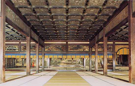 元和4年(1618)に造営された書院は,公的な接客の場である対面所(鴻の間)と私的な場である白書院から構成された建物で,豪壮な書院造の形態を踏襲しています。またこの東側に配された虎渓(こけい)の庭と呼ばれる枯山水庭園は,滝・渓流・海を表した単純明快な構成ですが,色石やソテツを用いるなど派手で大胆な桃山時代の豪華さが表れています。