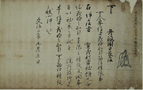 (2)後醍醐天皇綸旨(ごだいごてんのう りんじ) 元弘3年(1333)8月20日付