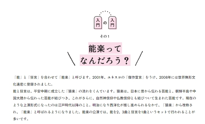 基礎知識や鑑賞のポイント、豆知識等を御紹介し、「伝統文化」をより身近に感じ、興味を持っていただき、鑑賞につなげるため開設しました。