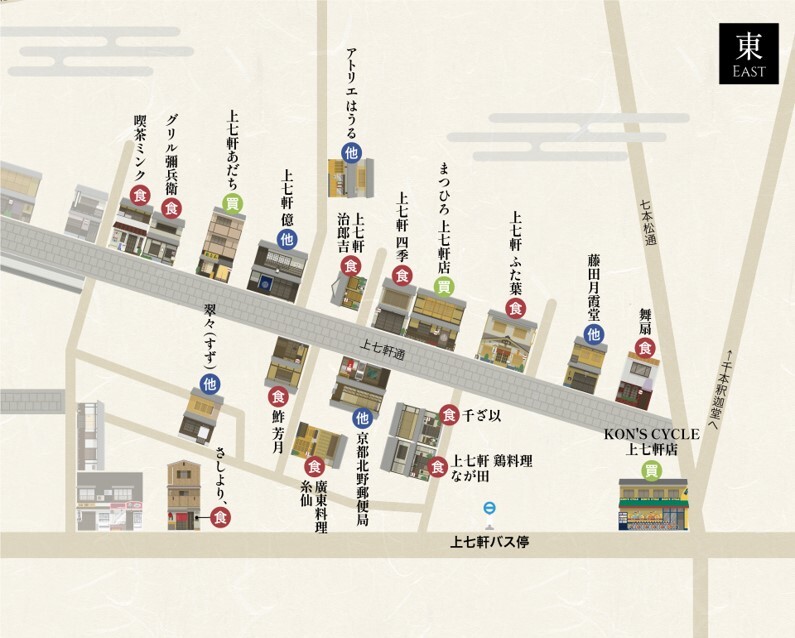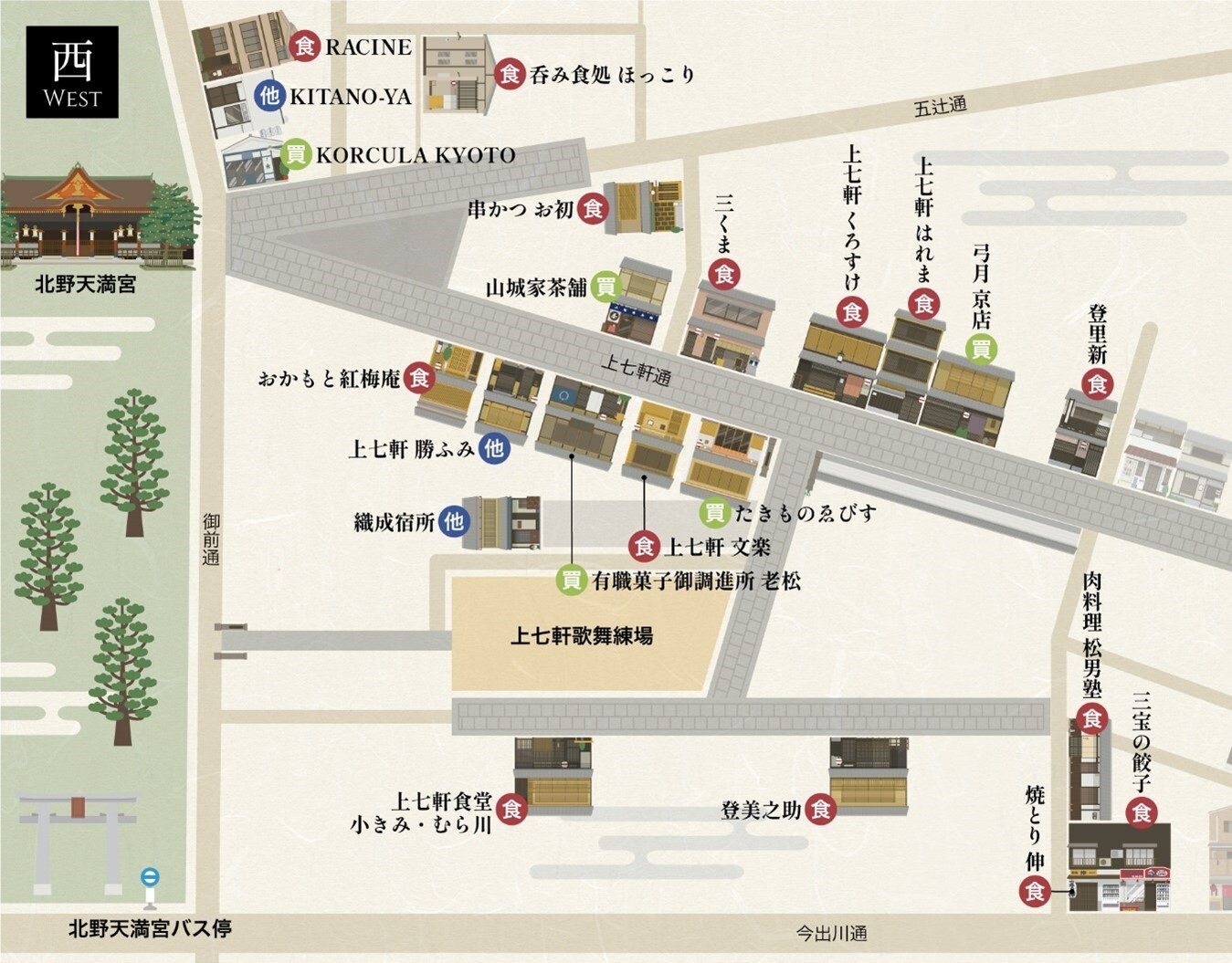 上七軒通り及び上七軒匠会加盟店舗マップ