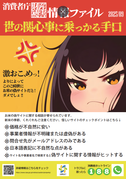 【緊急情報】お米を安く販売しているかのように装った偽サイトに関する注意喚起