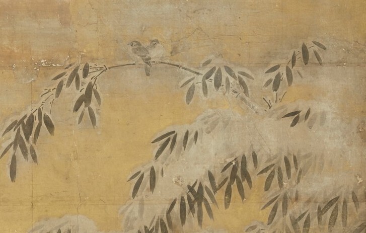 〈白書院〉四の間障壁画《雪中梅竹柳小禽図》部分