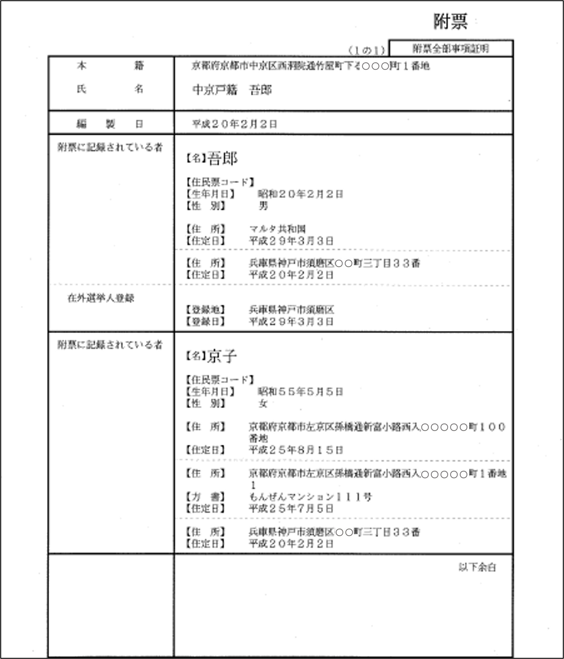 戸籍の附票の写しの様式変更について