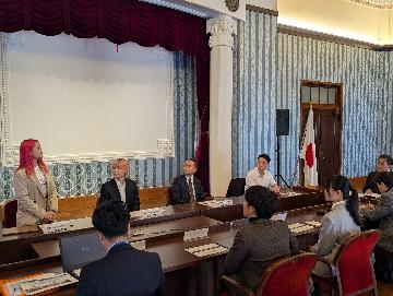若手起業家や自身のやりたいことに挑戦している若者、起業を支援する方々などにお集まりいただき、若者の起業家精神の醸成をテーマに、京都でチャレンジする若者を増やす取組等について、松井孝治京都市長を交えて意見交換を行いました。