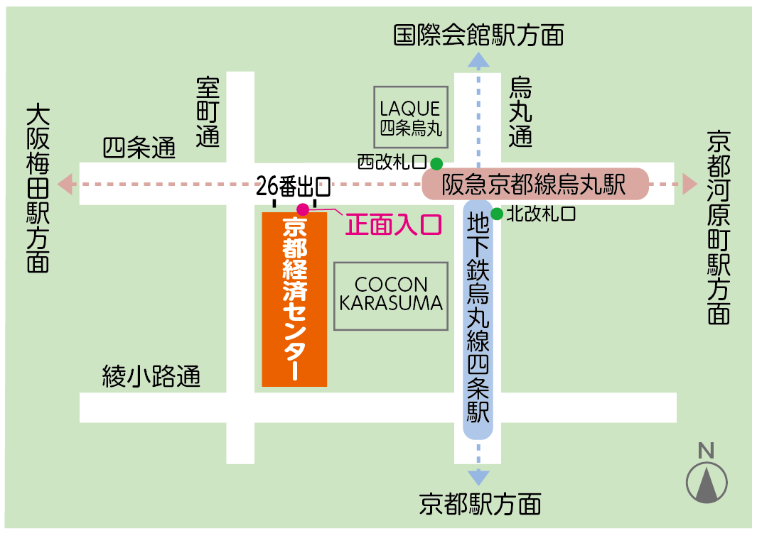 京都市営地下鉄烏丸線「四条駅」北改札出て26番出口直結
