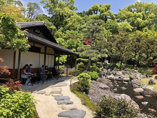 各日とも、新緑映える清流園を眺めながら、2流派によるお茶席をお楽しみいただけます。