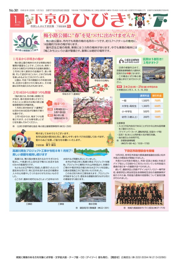 市民しんぶん下京区版「下京のひびき」令和4年2月15日号2022年02月09日