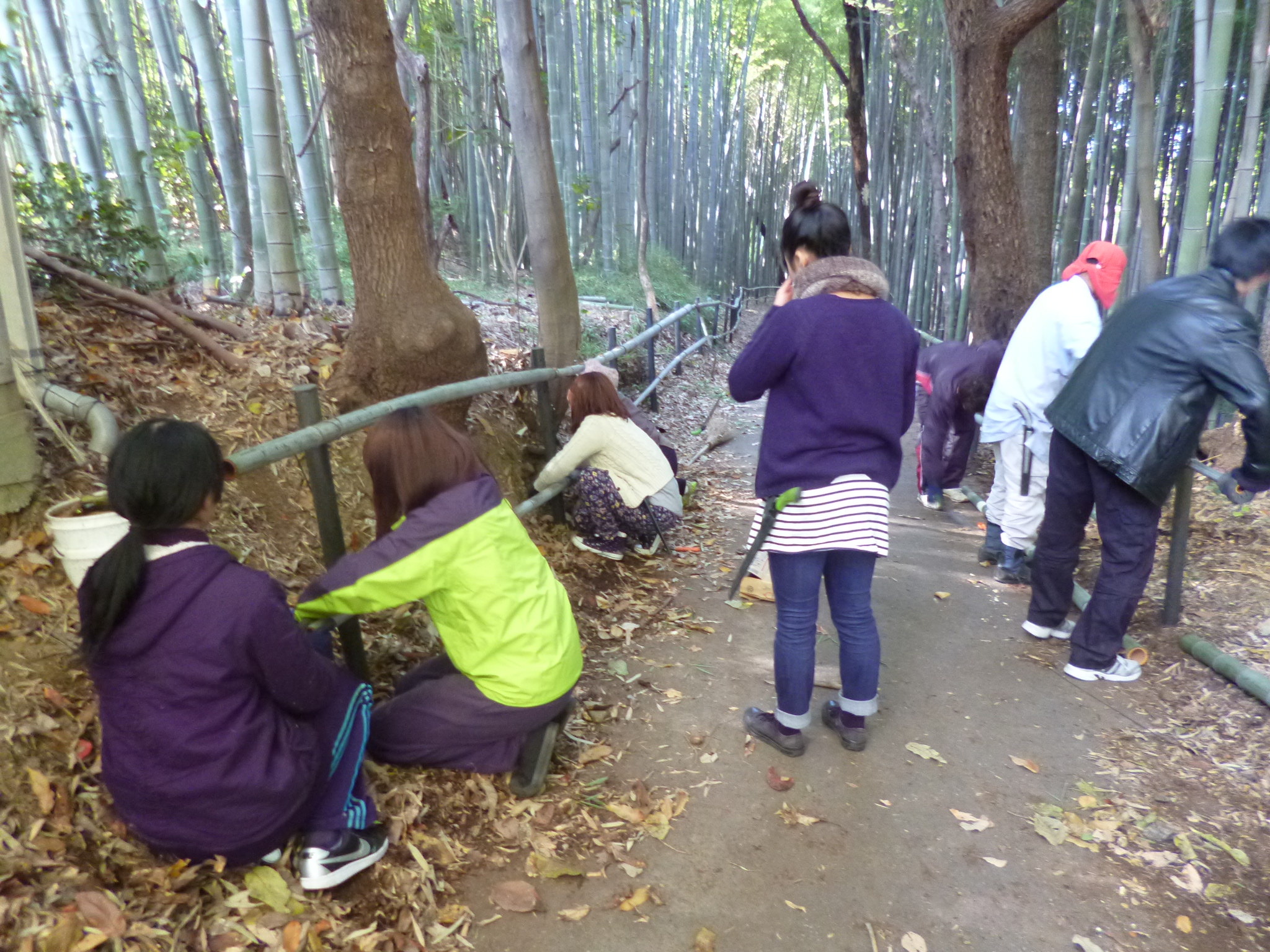 11月下旬から12月上旬にかけて,深草トレイル大岩山展望所コースの一部において,NPO,大学生,地域住民などの皆様にご協力いただき,竹柵の整備を行いました。竹柵には現地の竹林の竹を使用し,明るく歩きやすいコースに整備しました。