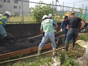 10月11日,伏見区横大路柿ノ本町において,横大路学区(横大路連合自治協議会,横大路交通安全推進委員会等)と伏見土木事務所が協働し,道路整備を行いました(※)。
