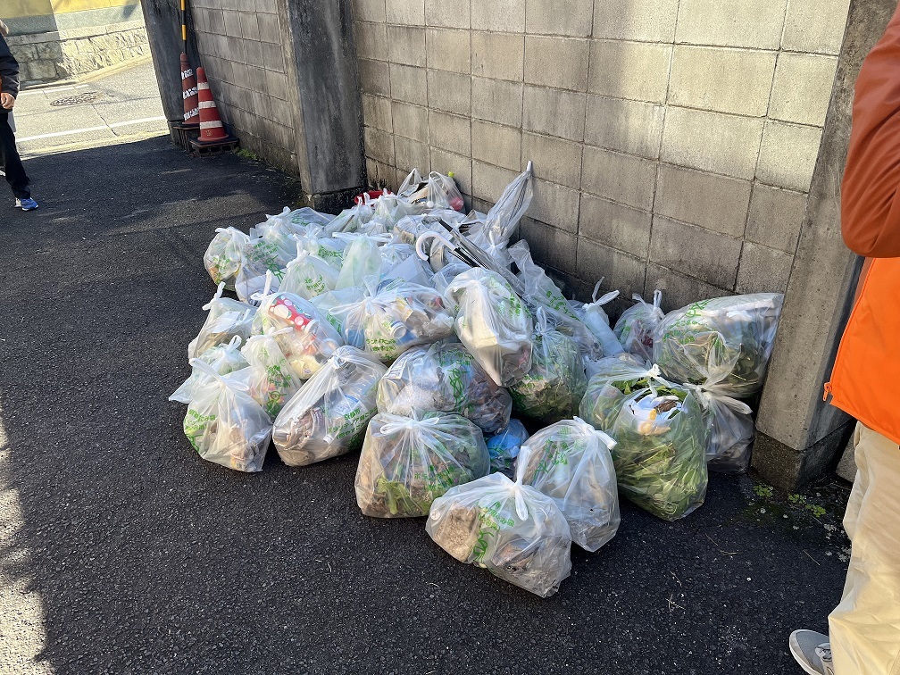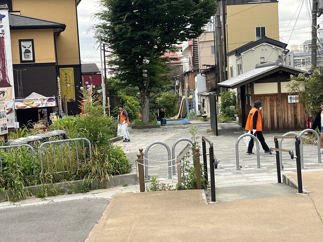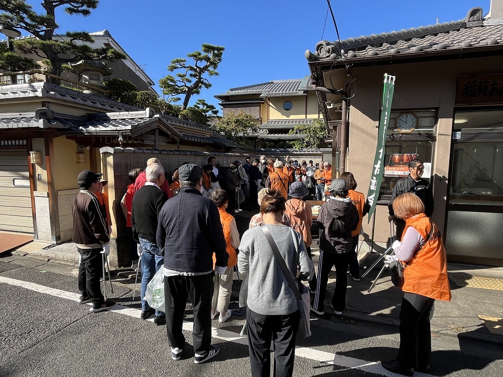 稲荷学区でも春と秋の年2回、稲荷保健協議会と稲荷保健協議会ごみ減量委員会の共催で地域を挙げた一斉清掃活動が行われており、稲荷山山麓に広がる悠久の歴史の中で紡がれてきた地域の美観保持など地域の環境保全活動が進んでいます。清掃活動の様子