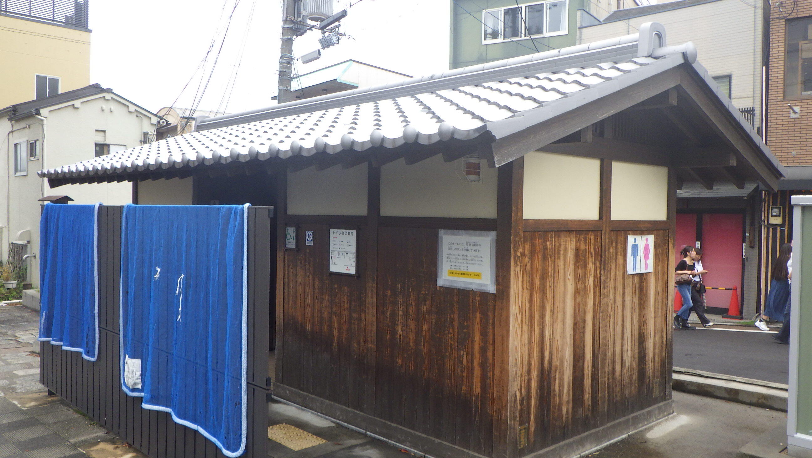 稲荷新道(深草一ノ坪町付近)は、鉄道やバスで訪れる参拝者や車両の通行があり、隣接する稲荷公園のトイレも多くの方が利用されています。令和元年度、稲荷公園において、トイレまでの園路のバリアフリー化や多目的トイレの設置を行いました。