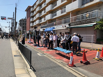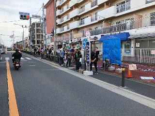 観光客の急増に伴い、混み合っていた稲荷大社前バス停に待合スペースを確保し、混雑時でも安心して利用できる環境に整備しました。