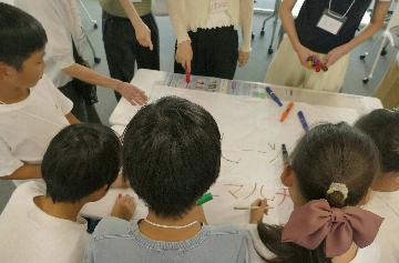 「始まりのワーク」を行いました。 これからの4回を同じグループで交流・活動するメンバーで、グループの名前を決め、旗作りを行いました。