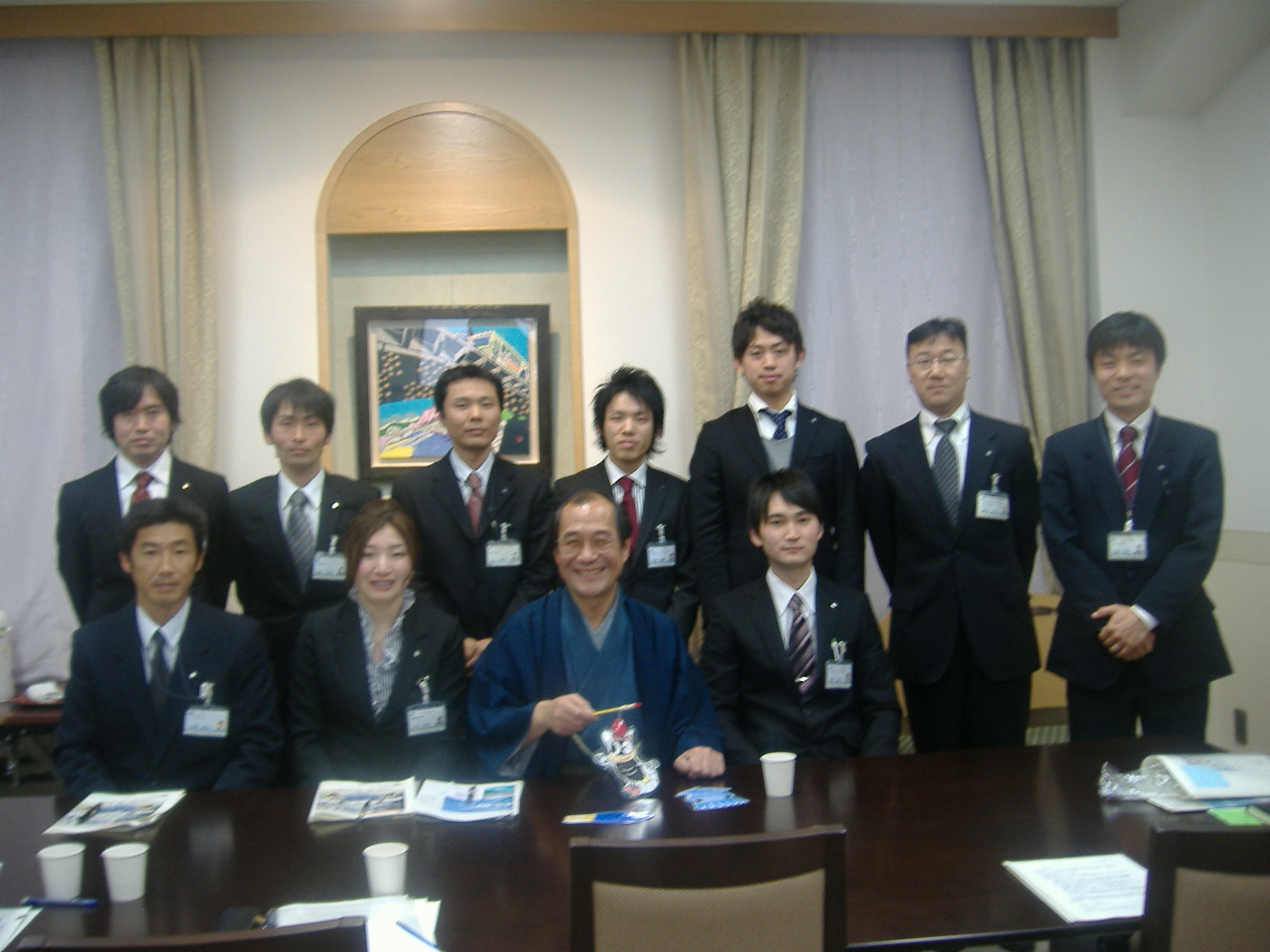 今回は,市長と「FM(フレッシュミーティング)プロジェクト」のメンバー10名が,「今,私たちに何ができるか」,「地域の中で営業所がどのような役割を担えるのか」をテーマに,1時間半程度,意見交換を行いました。