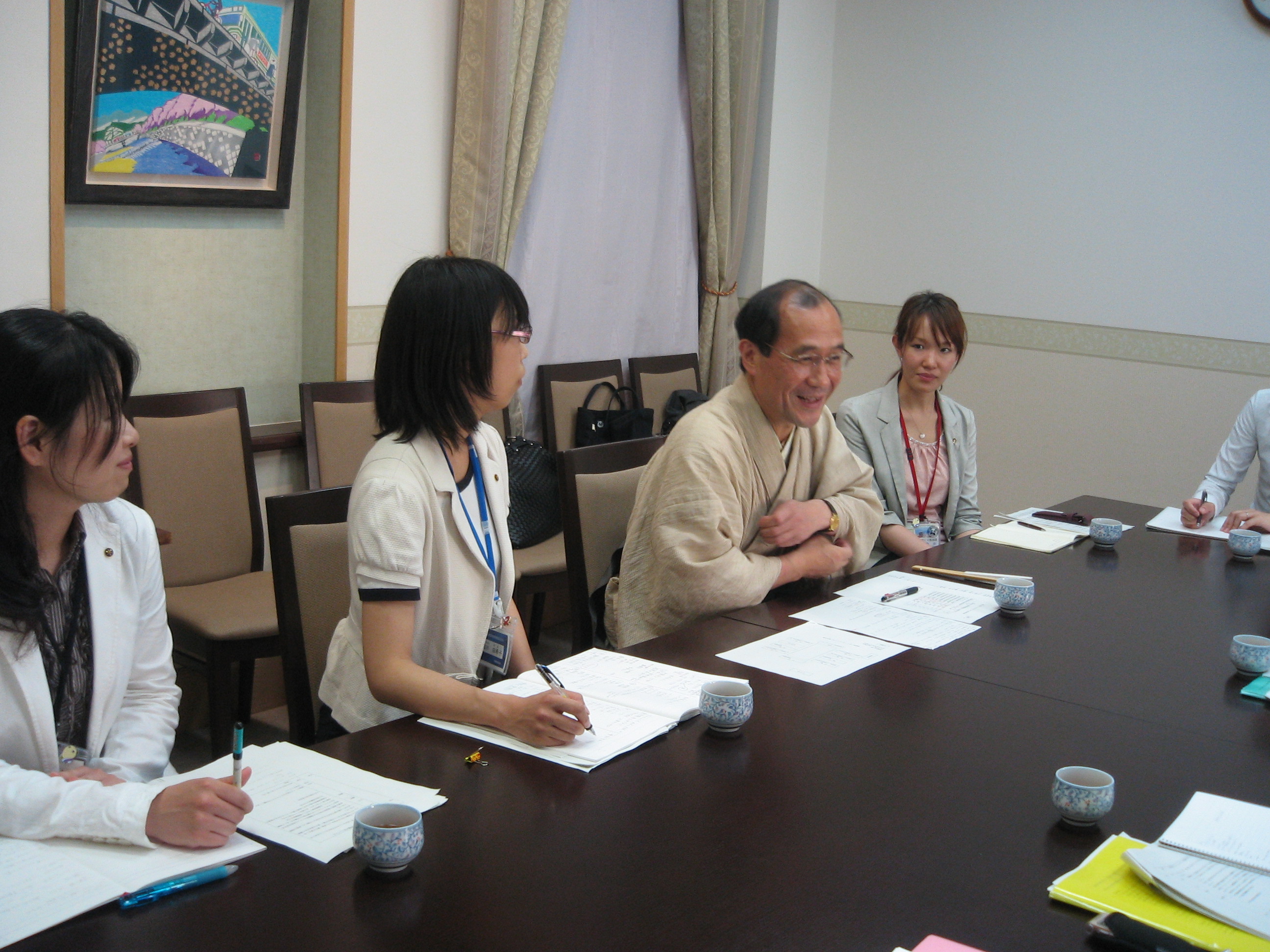 今回は,市長と「結(ゆい)の会(京都市保健師会)」のメンバー9名が,「東日本大震災支援活動を振り返る~被災地で学んだ保健師活動を今後どのようにいかすか~」をテーマに,1時間半程度,意見交換を行いました。