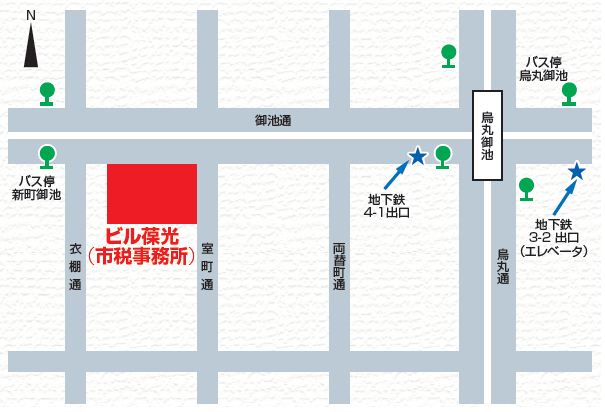 京都市中京区室町通御池南入円福寺町337 京都市市税事務所ビル葆光(ほうこう)(〇〇区担当)