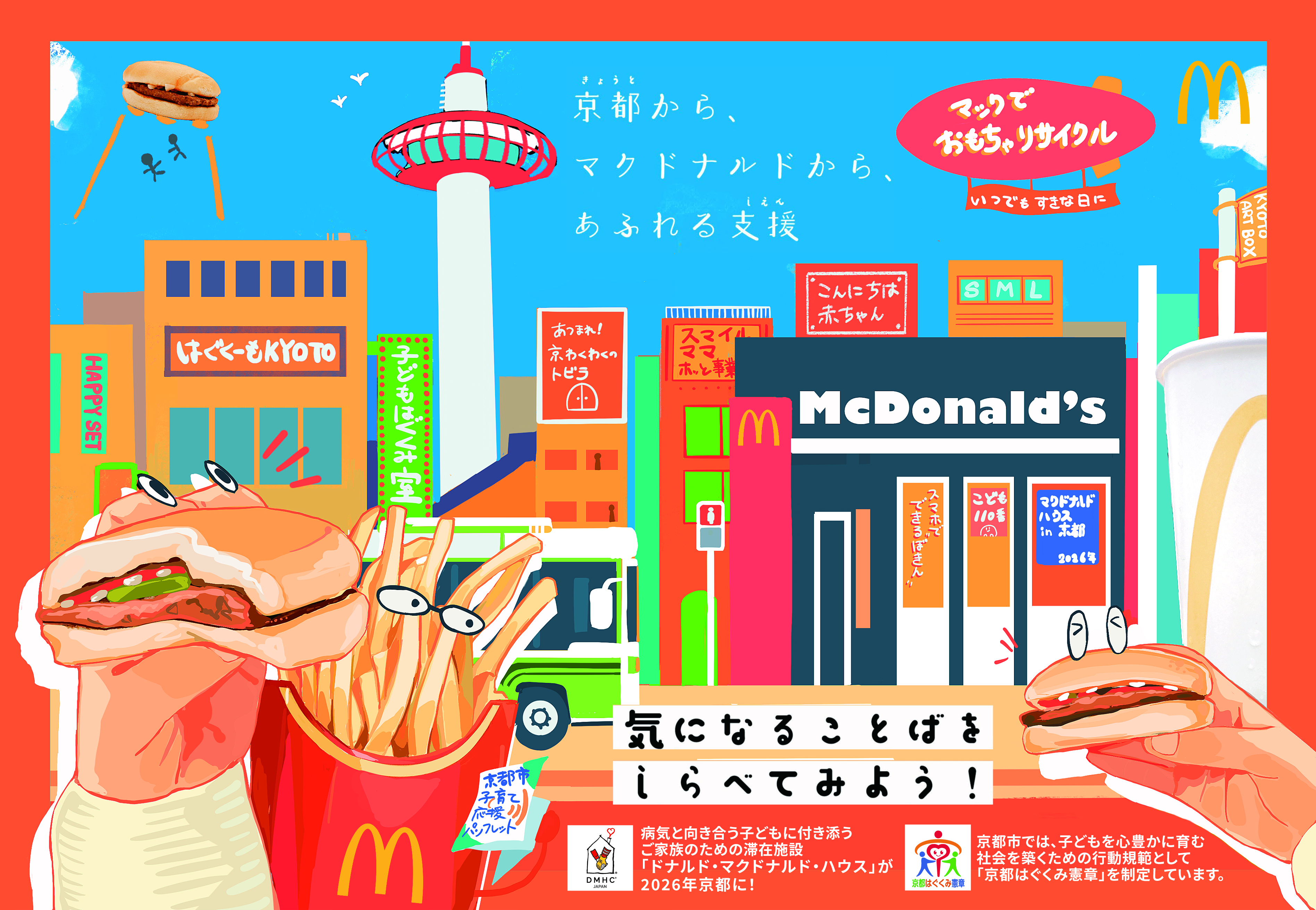 日本マクドナルド株式会社は、創業以来「地域に貢献する」という理念を掲げており、共に助け合う社会を目指したチャリティ文化の醸成と子どもの治療に付き添うご家族のための滞在施設「ドナルド・マクドナルド・ハウス」の支援などを通じて“病気の子どもとその家族”を笑顔にする活動に取り組んでいます。現在、国内14か所目のハウスとして「ドナルド・マクドナルド・ハウス 京都」が2026年秋頃のオープンを目指しており、開設に向けた様々なサポートを行っておられます。