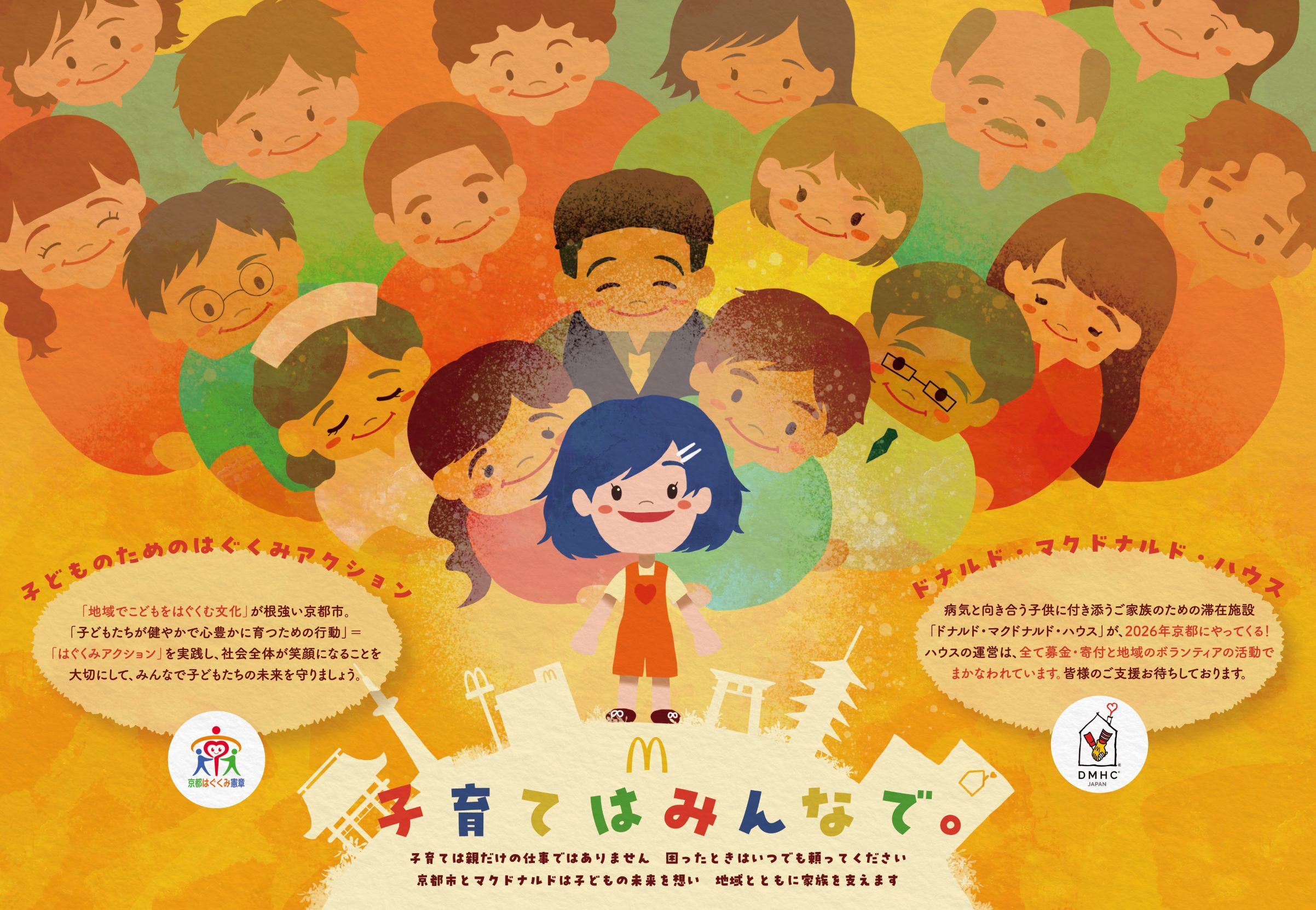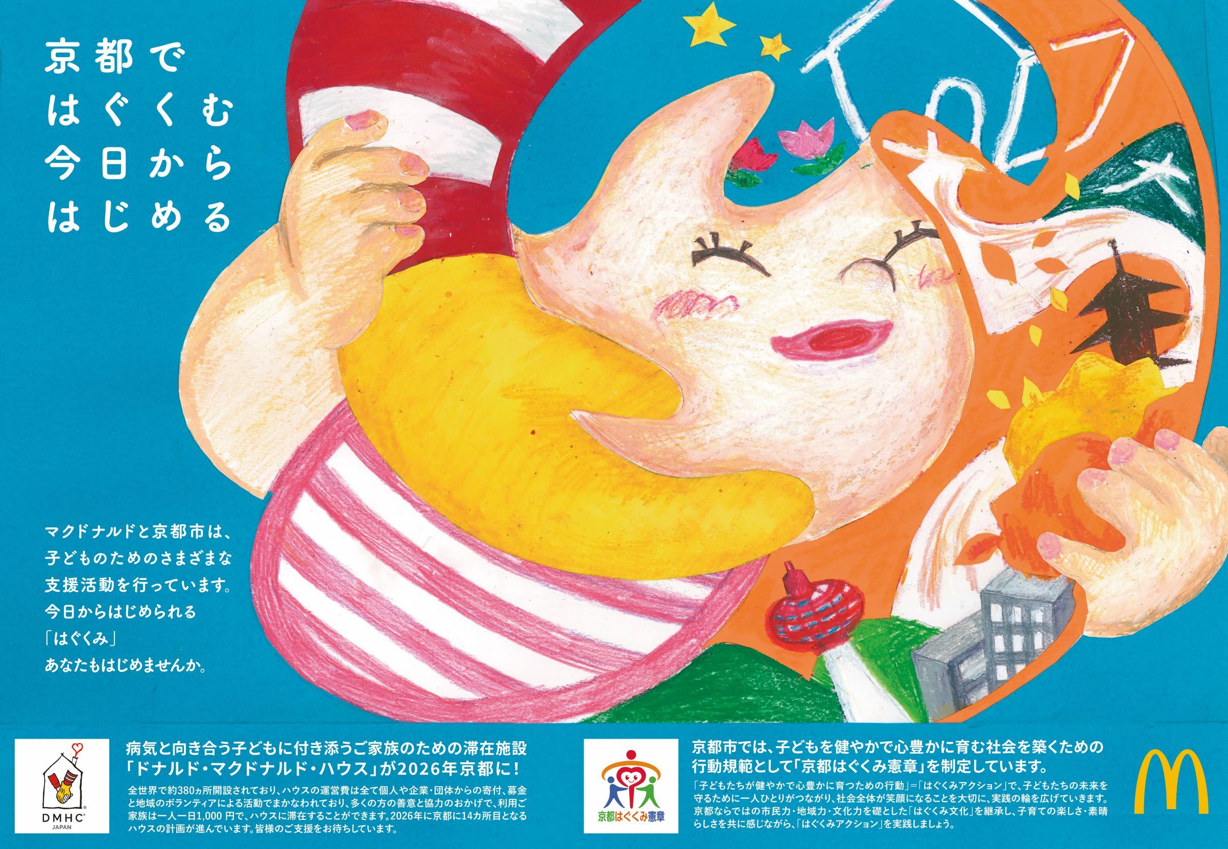 マクドナルドや京都市が子どもを守り、はぐくむ様子を表現しました。コンセプトは「温もり」です。子どもが描いた絵のような質感と、抱きしめられる子どものイラストで温かみを感じ取ってもらえたら嬉しいです。