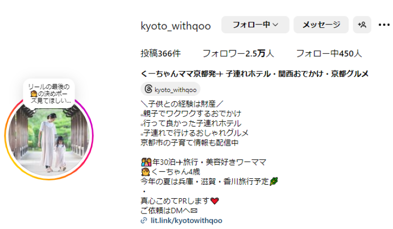 その一環として、京都市内の子ども・親子向けへのお役立ち情報を積極的に情報発信されている、子育て中のインフルエンサーである「くーちゃんママさん(@kyoto_withqoo)」及び「なるさん(@kyoto_mamalife)」を「京都市子育て応援インフルエンサー」として任命します。