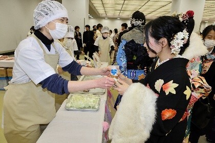 二十歳を迎えた祇園甲部の舞妓「明日葉」さん及び「佳つ秀」さんが、舞妓姿で式典に参加し、厳しい修行を経て培った舞を披露されます。