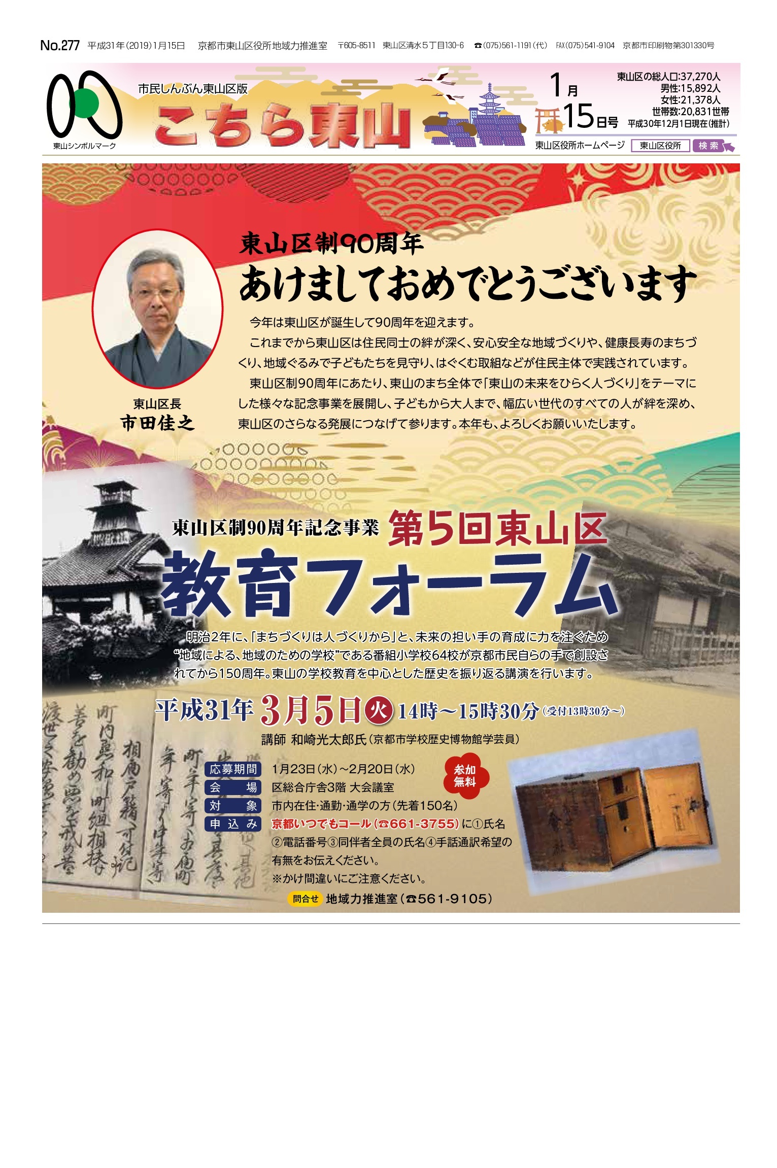 市民しんぶん東山区版「こちら東山」(平成31年1月15日号)