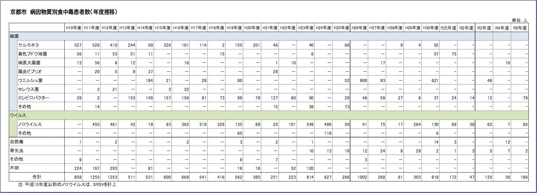 過去の京都市における食中毒発生状況