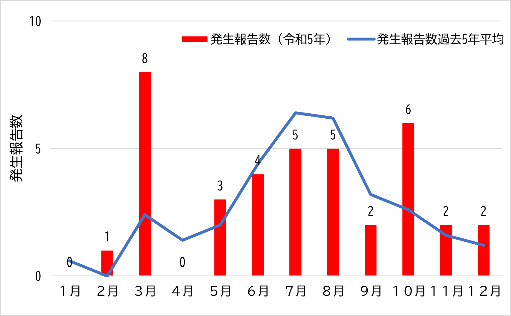 腸管出血性大腸菌による食中毒の発生状況は以下のとおりです。