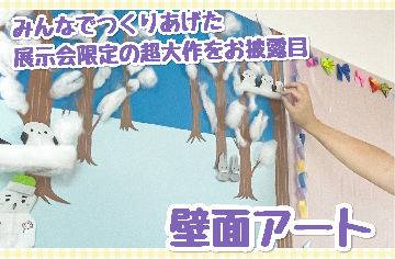私たちの初の展示会となる「すずらん日和展」では、ご利用者様たちで作り上げた巨大な壁面アートをお披露目いたします。その他、ここだけしか見られないご利用者様の本音で語っていただいた事業所紹介、すずらんの活動風景が伝わる動画など私たちの日常がよくわかる展示会となっています。また、展示だけでなくご利用者様が制作されたオリジナルイラストを使用したグッズも販売いたします。新発売のカプセルトイも置いてありますのでぜひ楽しんでいってください♪ご利用者様たちの想いが込められた素敵な作品たちをぜひご覧ください。