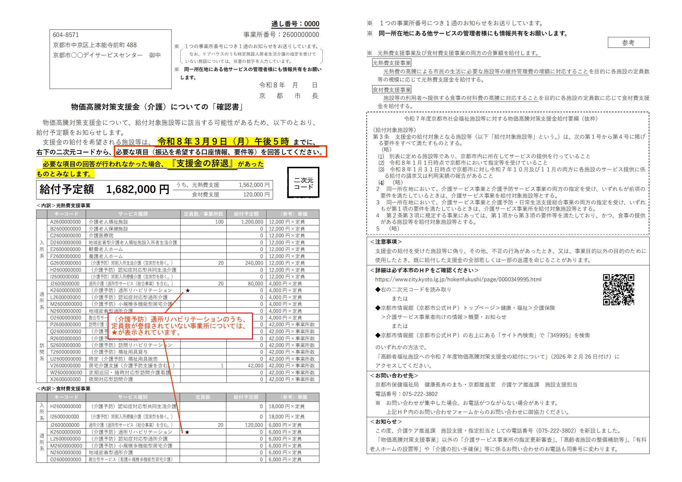令和7年度京都市高齢者・障害福祉分野の物価高騰対策支援金給付要綱