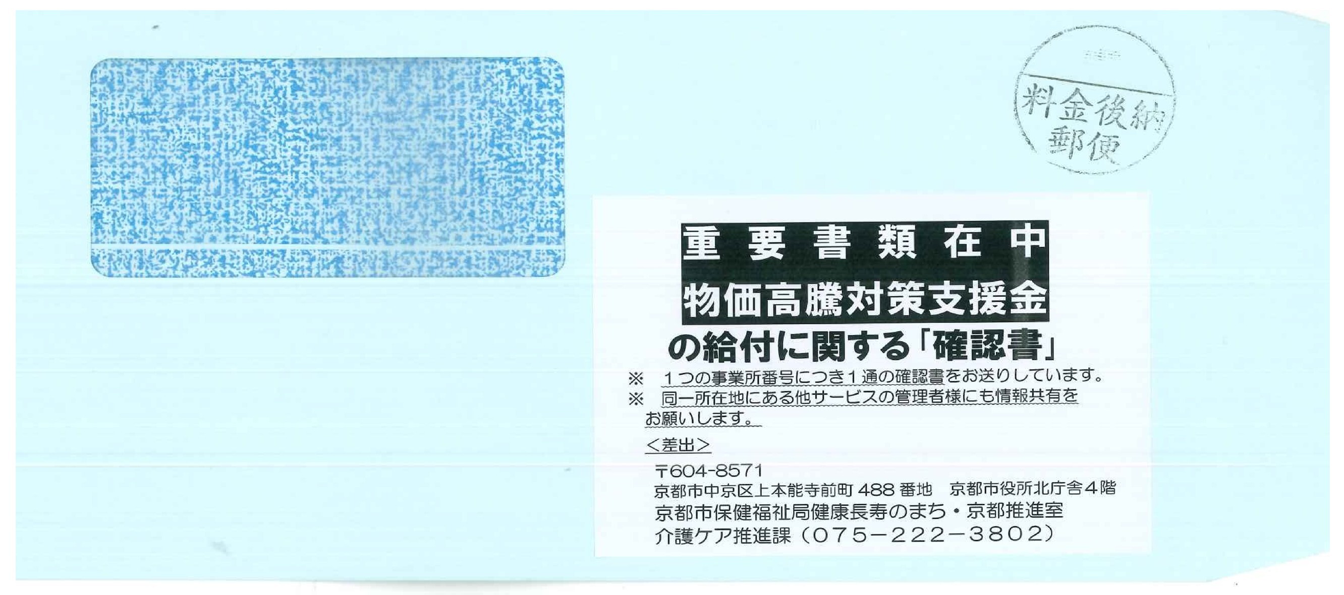 (画像)確認書送付用封筒の外観