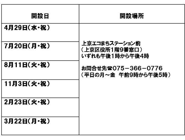 平日なかなか来られない方でもご利用いただけるよう、下記の祝日に開設します。