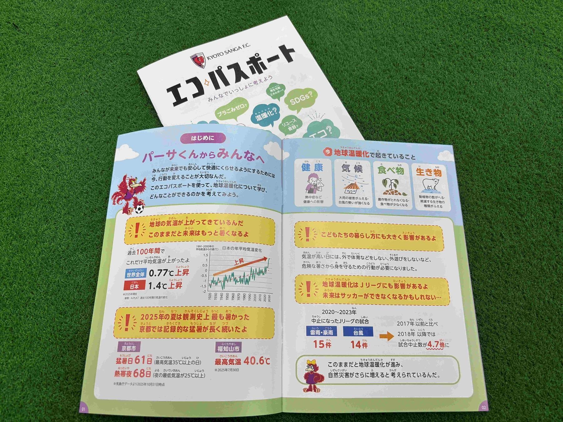 また、令和7年度には、小学生高学年を対象としたオリジナル環境教育教材「エコパスポート」を作成し、現役選手による出前授業を実施しました。