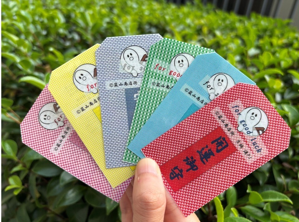 「ごみは買ったお店で必ず捨てる」という地域ルールを守り、嵐山商店街でテイクアウト商品を販売する対象店舗へごみを返した方に対し、記念品として、手作りしたオリジナルの「御守」を各店舗でお渡し。昨年11月に初めて実施し、観光客等から好評であったことを踏まえ、記念品の種類等を充実して実施。