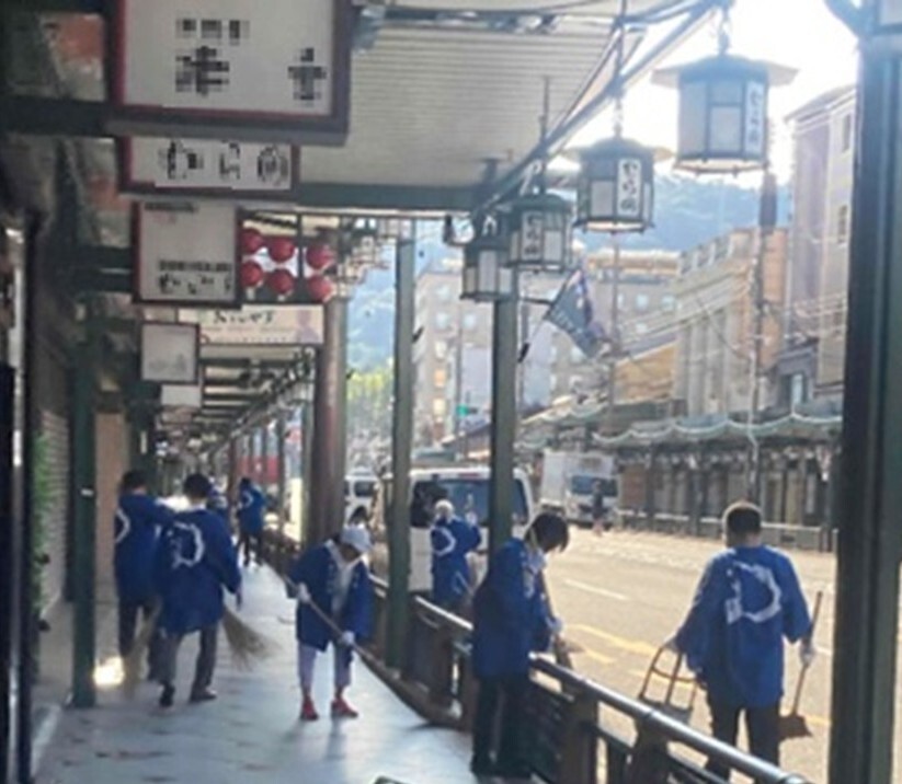 祇園商店街振興組合の有志で構成される「祇園青龍組」が主体となり、本市職員や、組合に属さないボランティアも参加し、祇園を中心とした地域一体の清掃活動を実施。秋の観光シーズンは、より多くの関係者が参加し、清掃範囲も拡大。