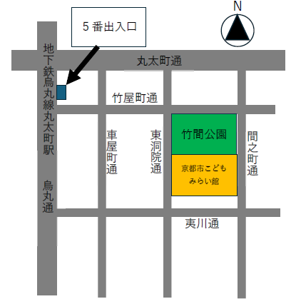 地下鉄烏丸線「丸太町」駅下車、5番出入口より徒歩約5分
