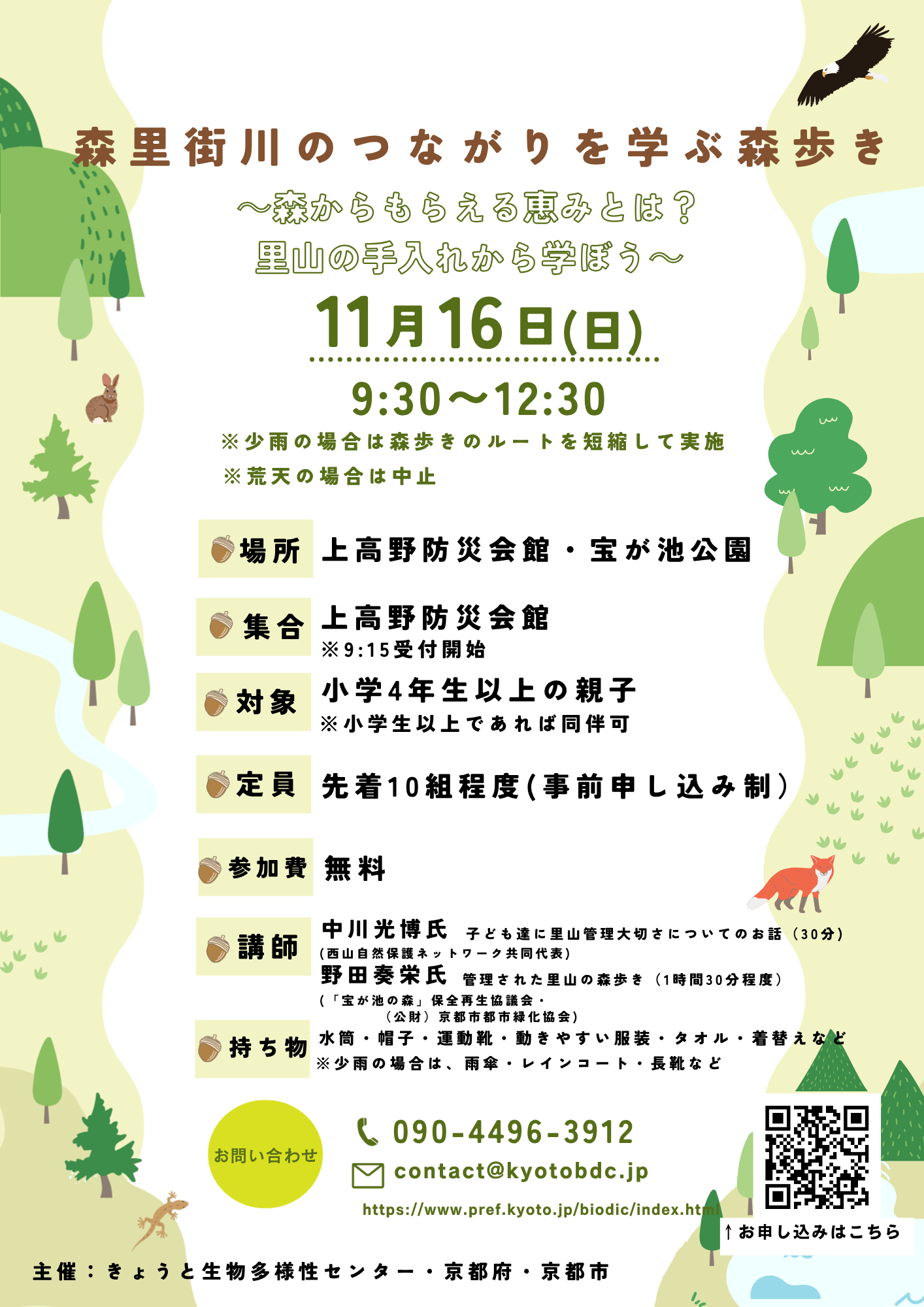 ※森の中を歩きますので、濡れたり汚れたりしてもいい恰好で御参加ください。