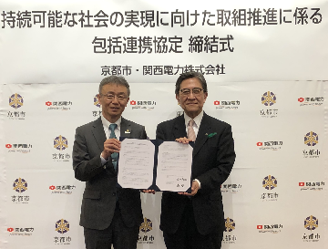 京都市は、本日、関西電力株式会社と持続可能な社会の実現に向けた取組推進に係る包括連携協定(以下、本協定)を締結しました。