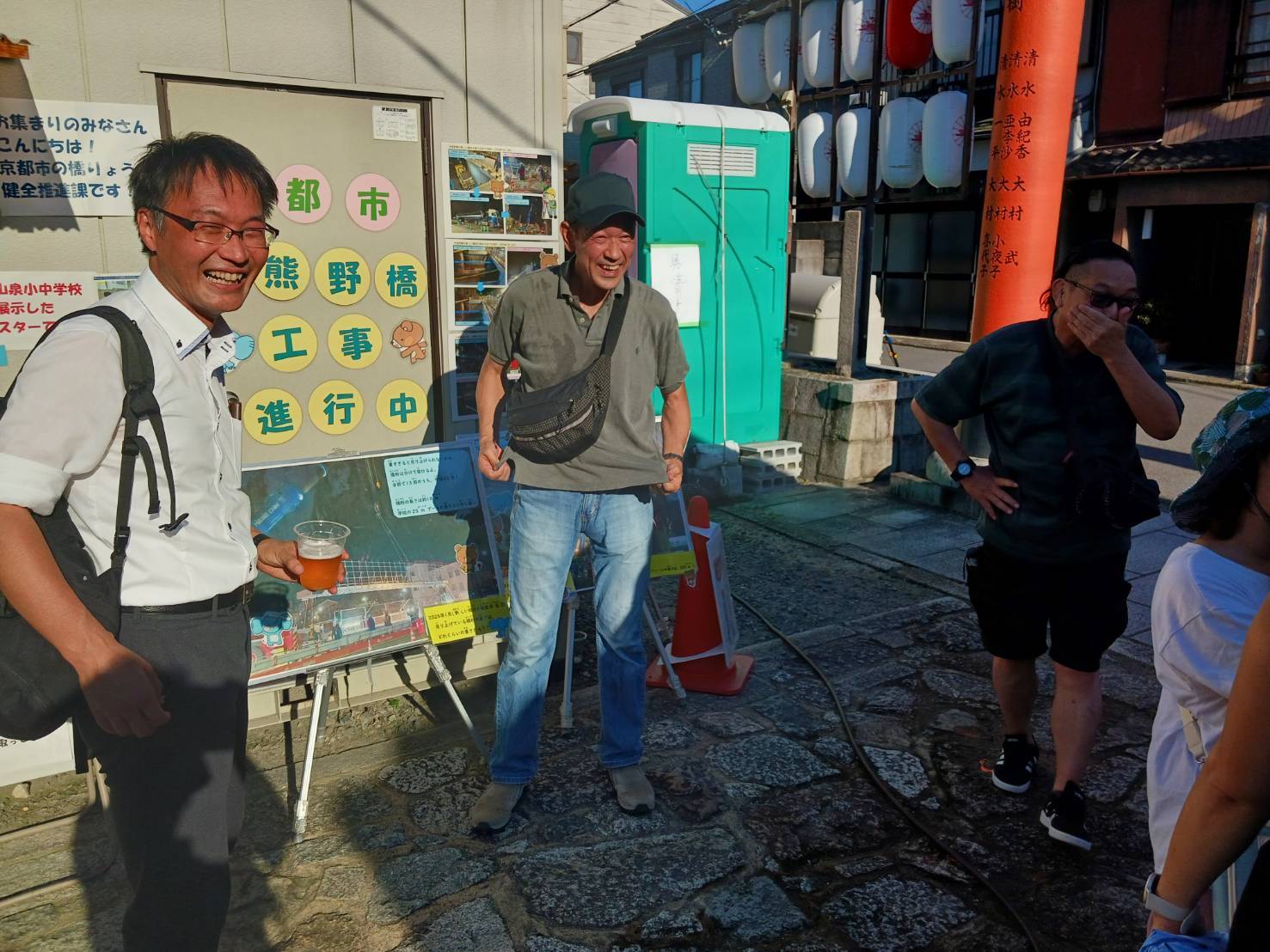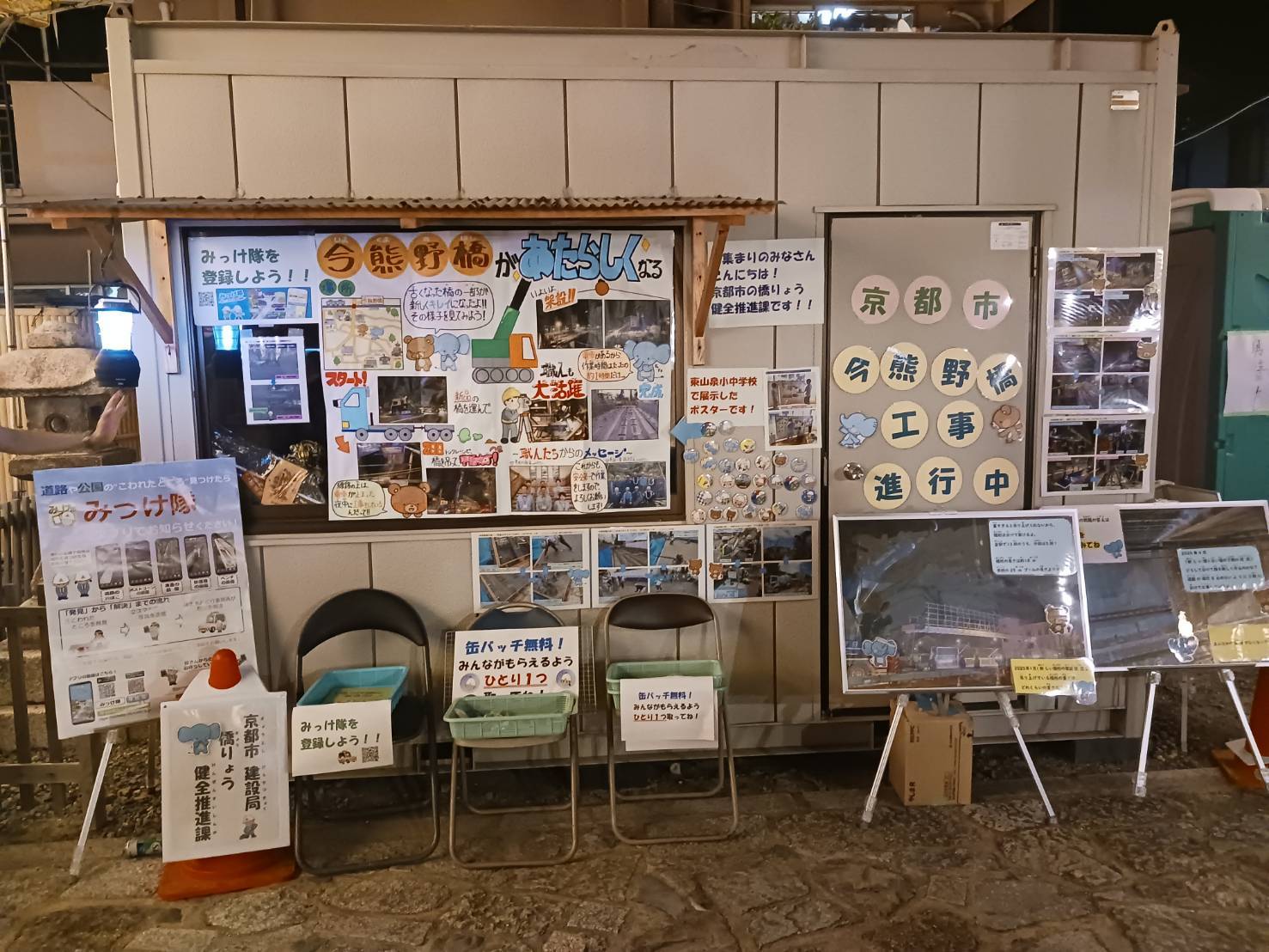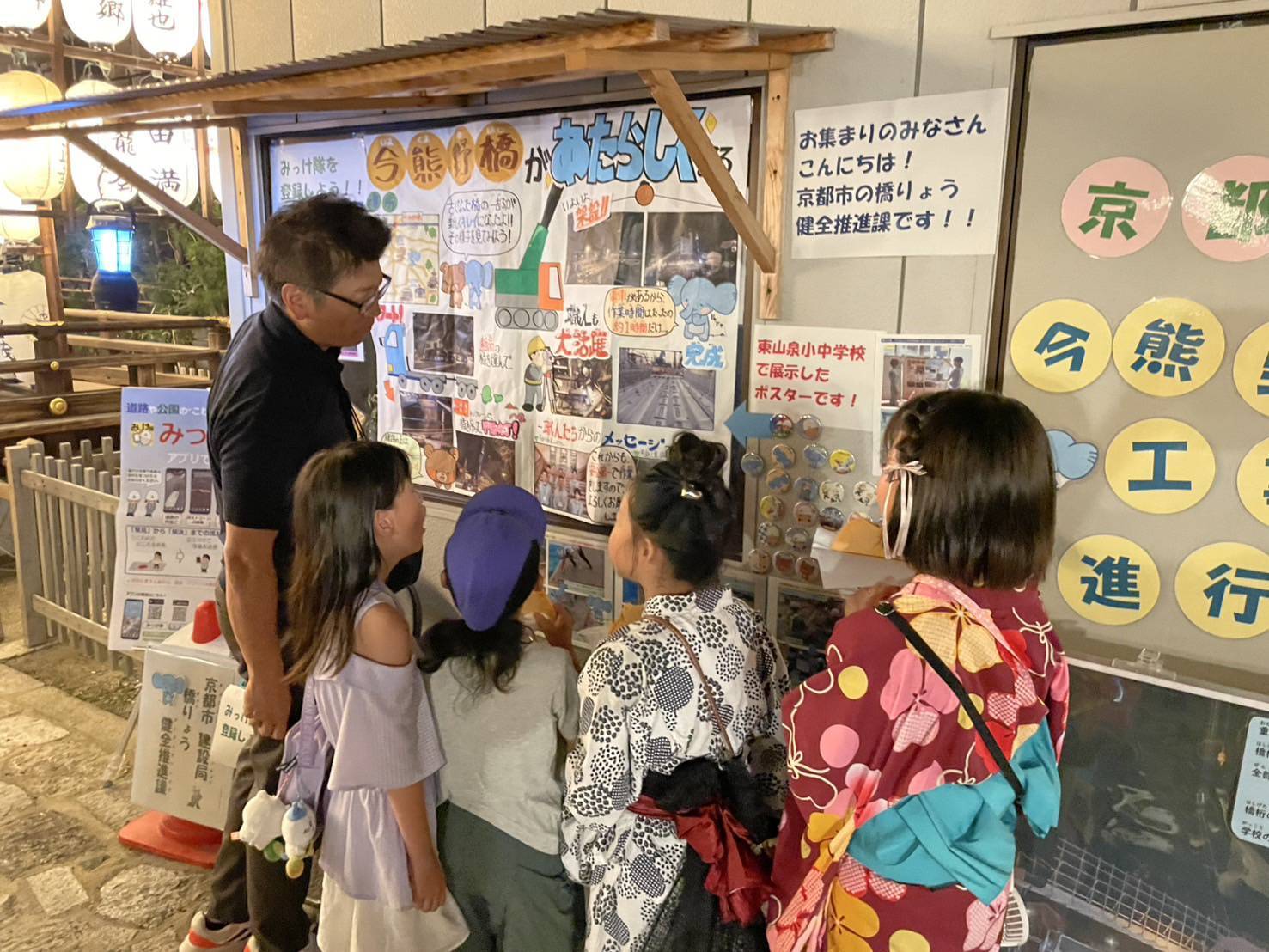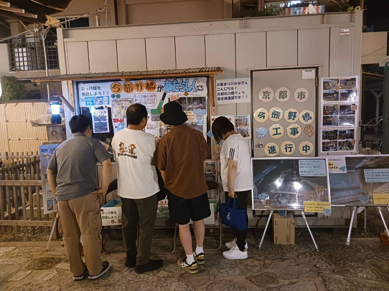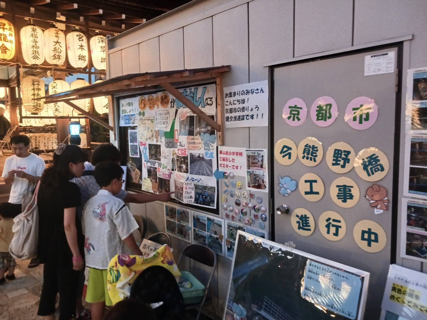 瀧尾神社で開催された盆踊りの夕べで地域の方に向けて、昨年に引き続き今熊野橋架替工事の進捗状況をポスターにわかりやすくまとめて展示しました。