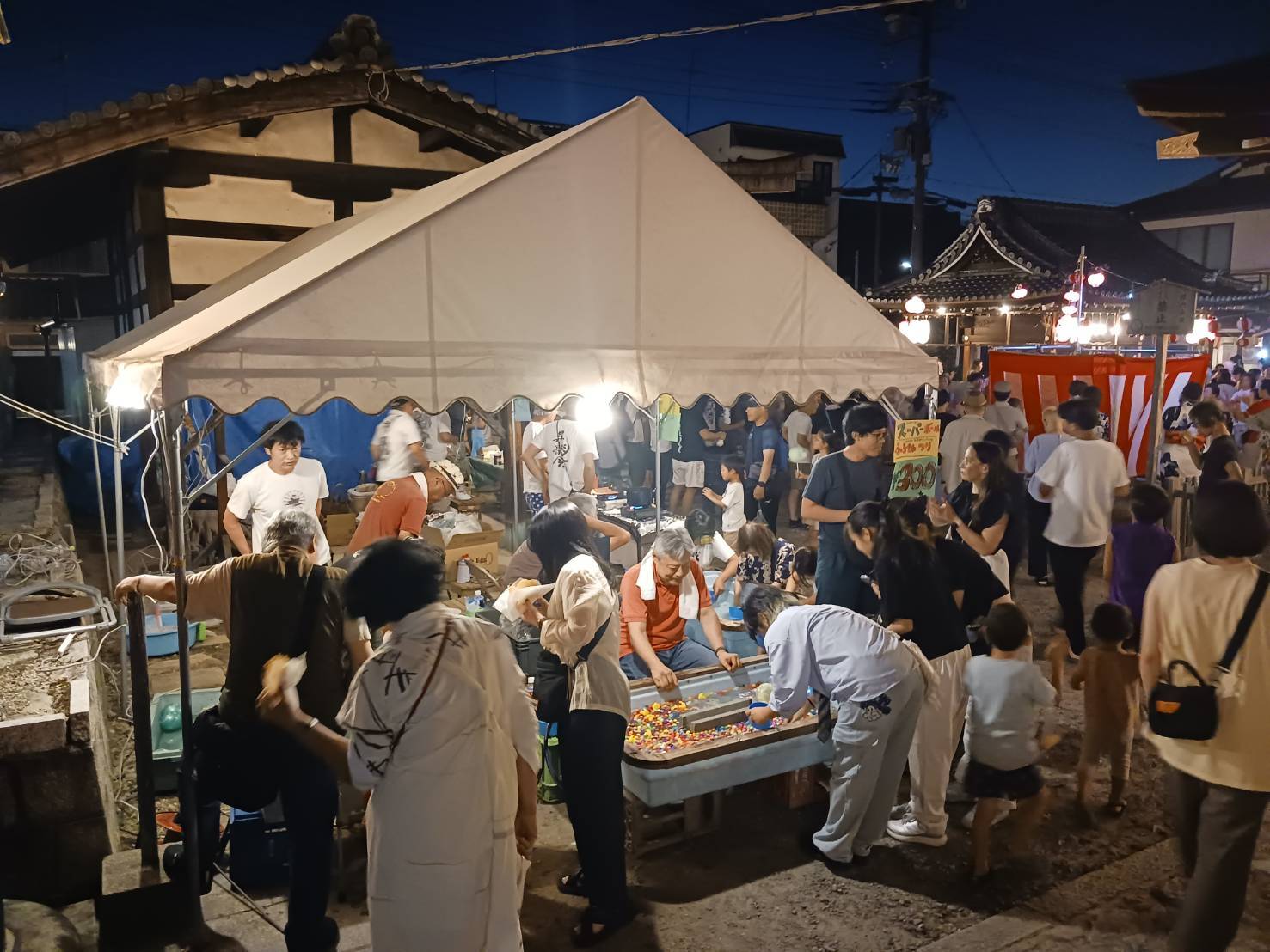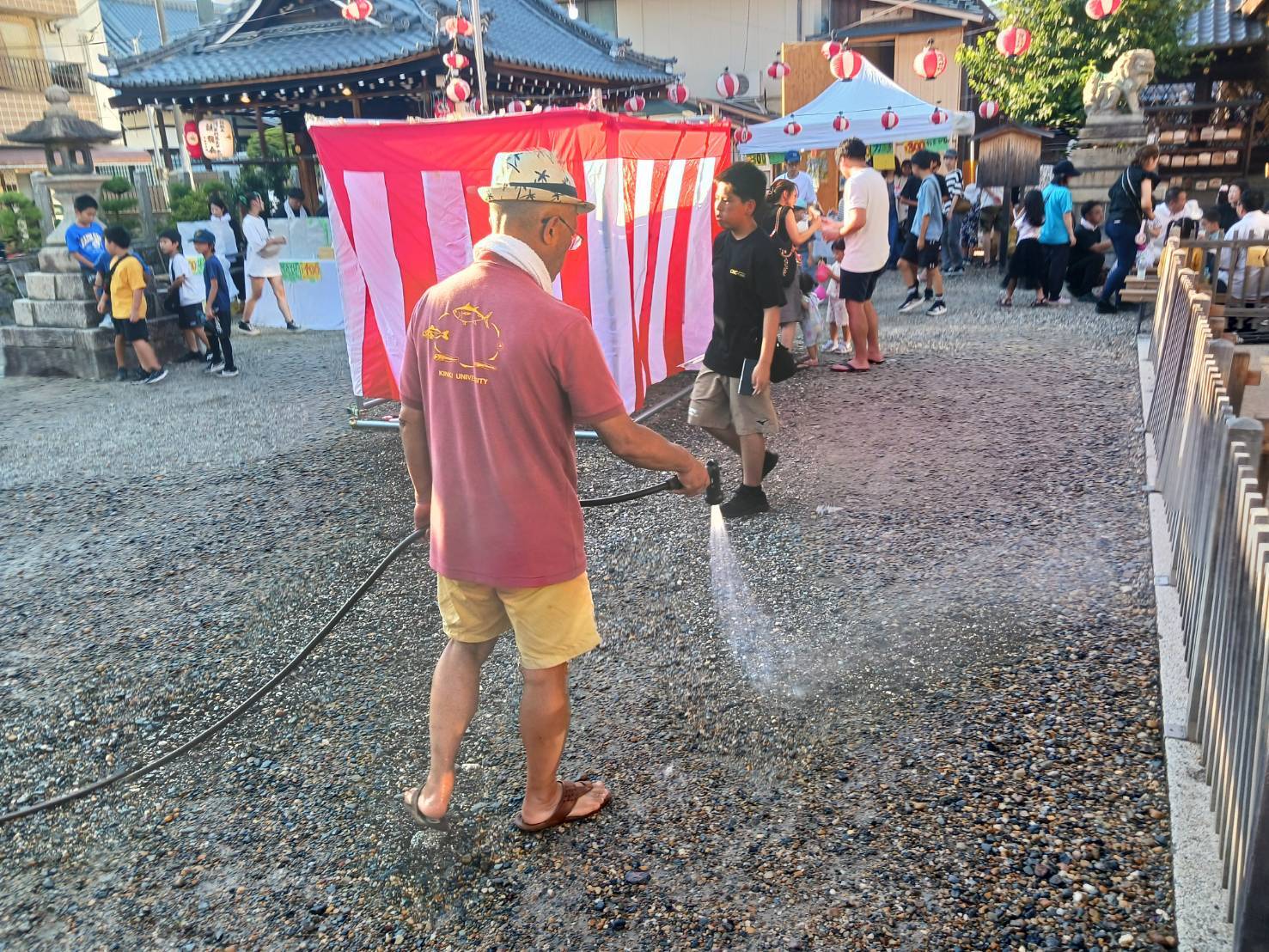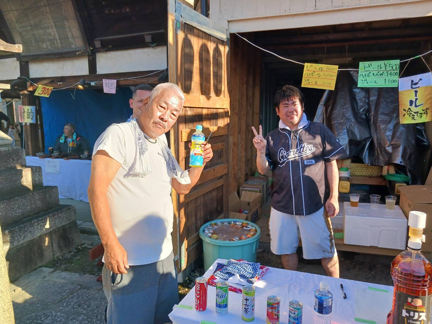 瀧尾神社昇龍会の方々が主催され、一橋自治協議会も協賛されているこのお祭りは、様々な屋台が並び、みなさんで盆踊りを楽しんだりと大盛況のお祭りです。地域の方々を含め、多くの方が来られていたお祭りに参加し、工事PRすることができました。