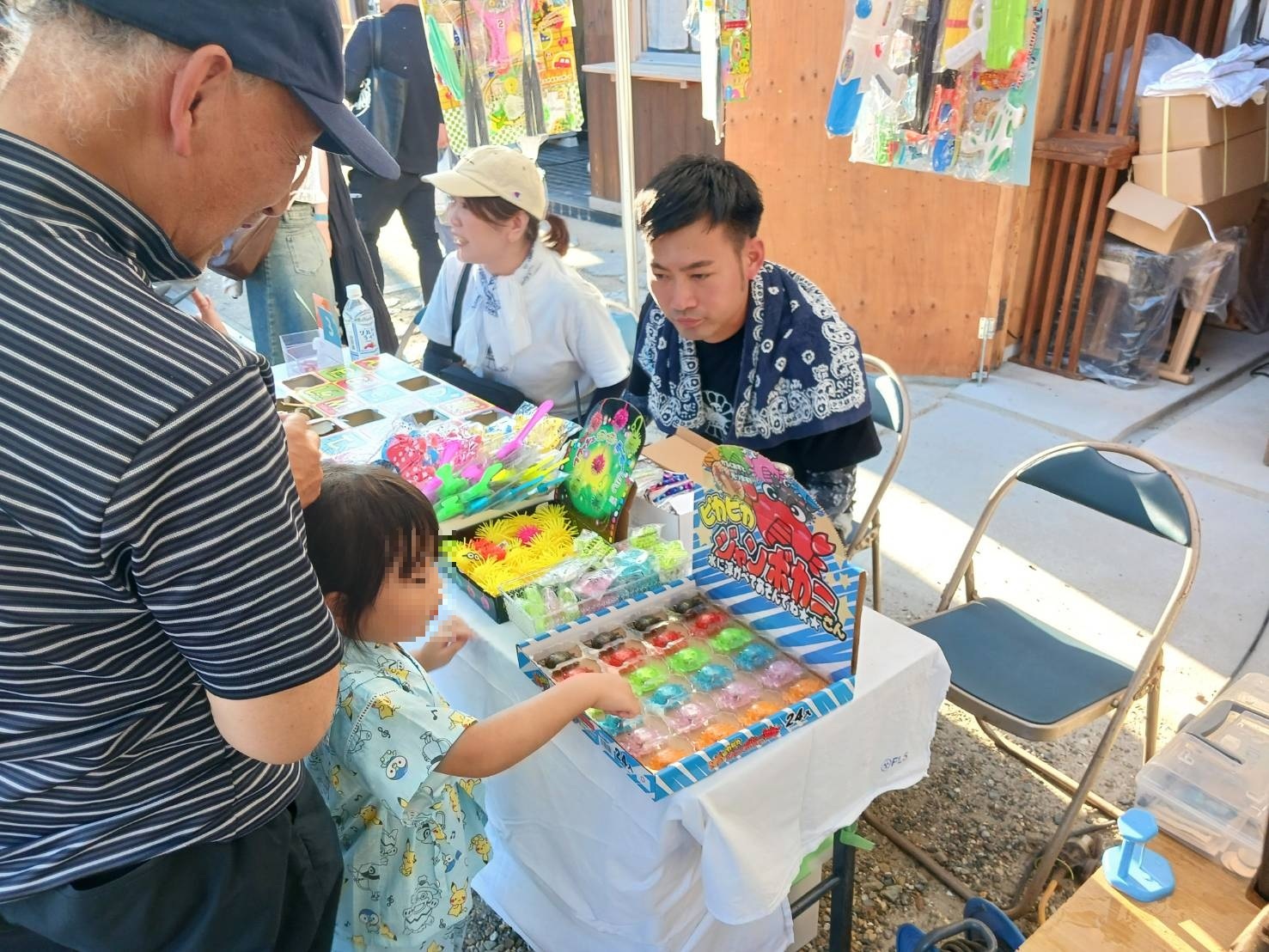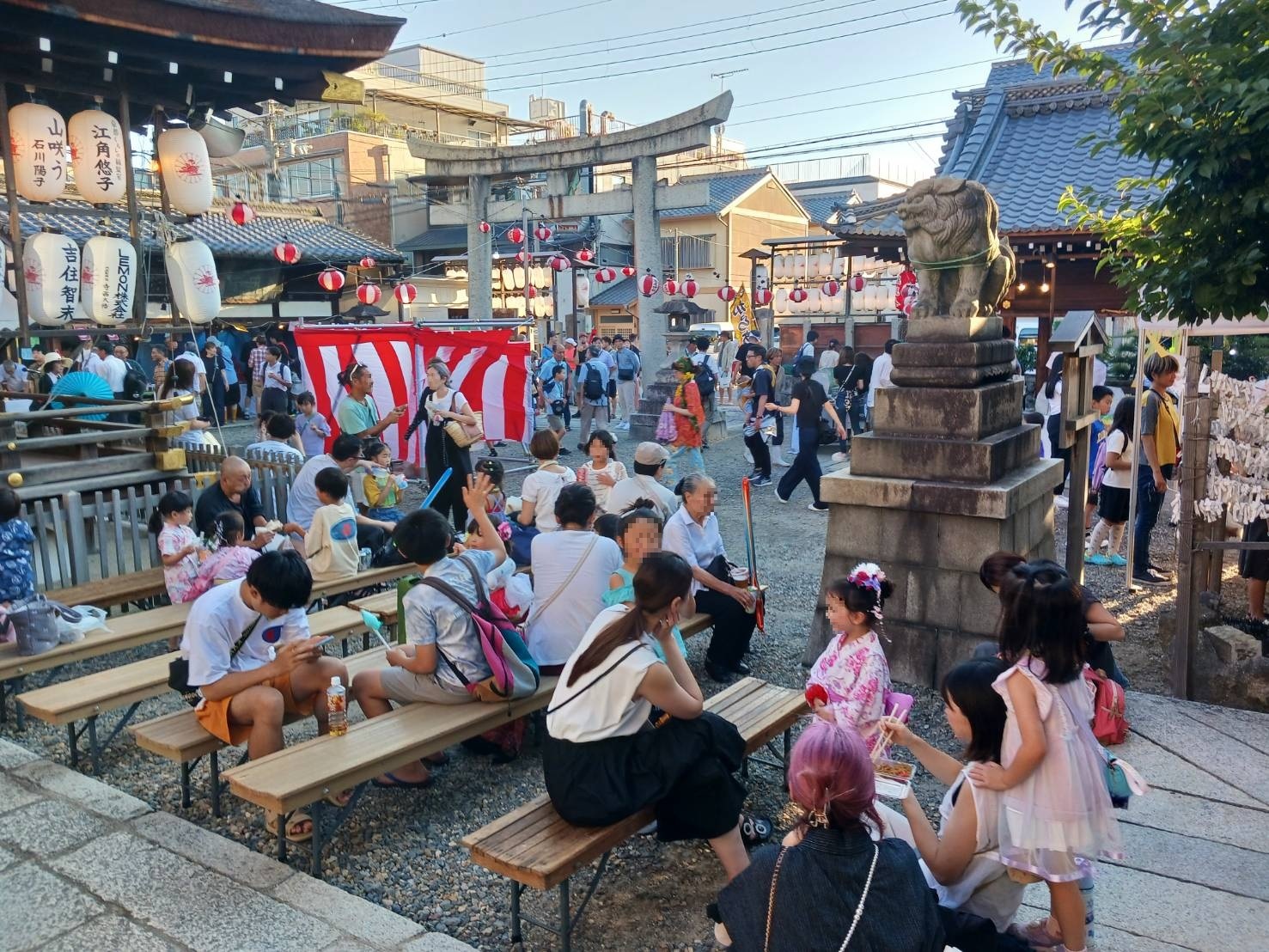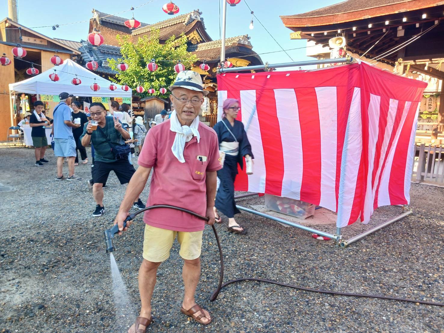 瀧尾神社昇龍会の方々が主催され、一橋自治協議会も協賛されているこのお祭りは、様々な屋台が並び、みなさんで盆踊りを楽しんだりと大盛況のお祭りです。地域の方々を含め、多くの方が来られていたお祭りに参加し、工事PRすることができました。