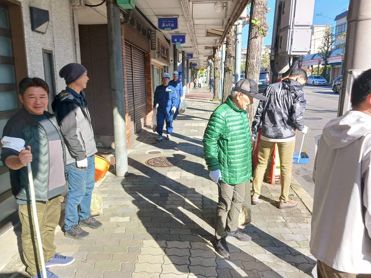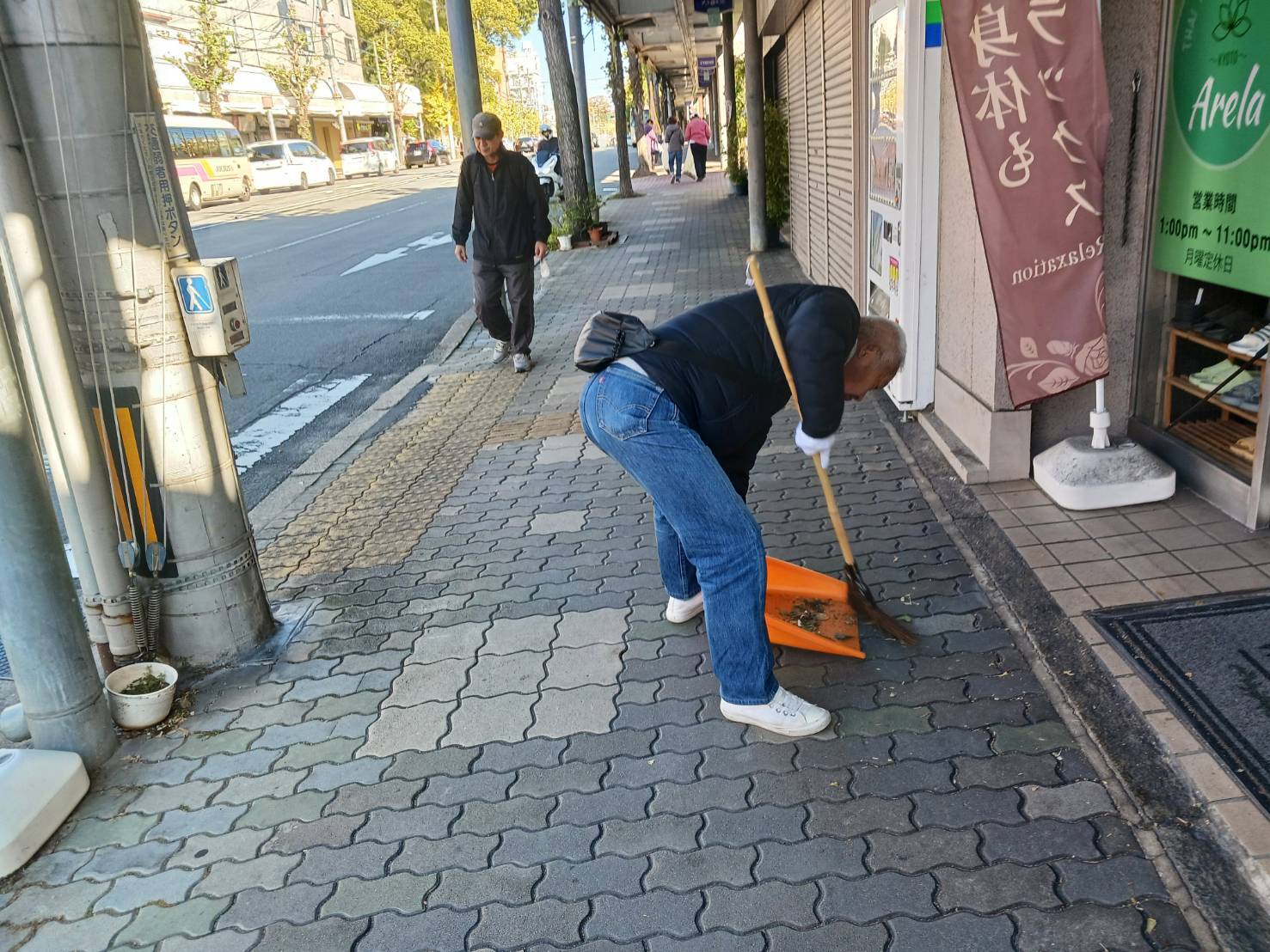 「歩道をキレイに清掃し、楽しく交流しましょう!」
