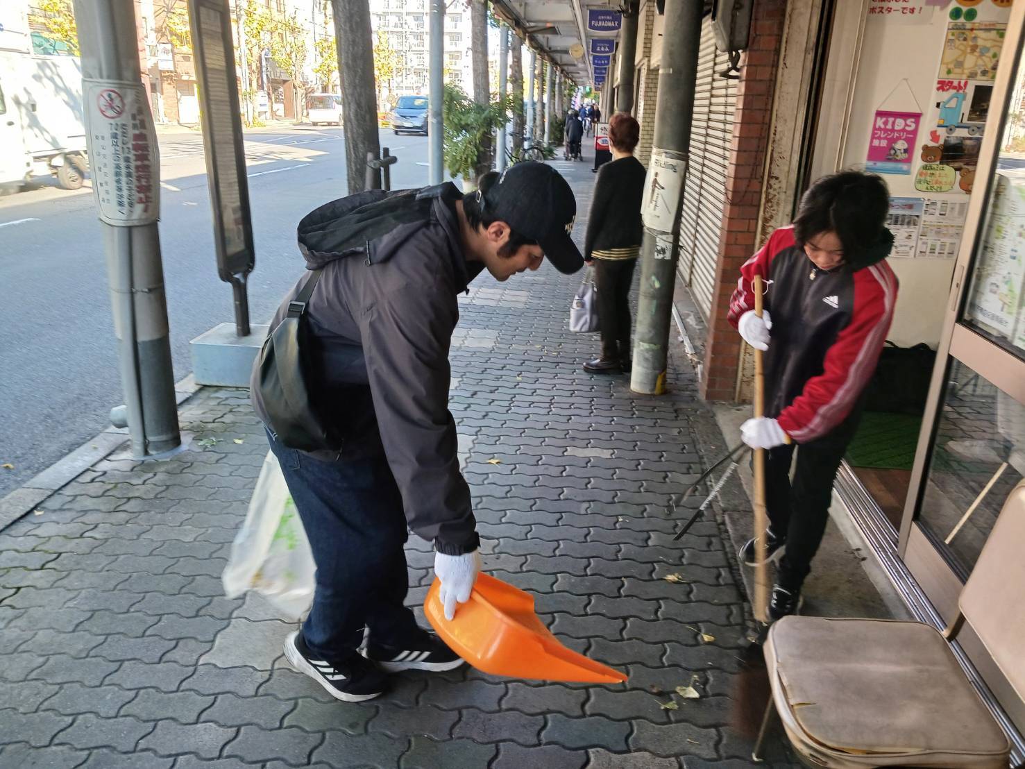 商店街の清掃活動に地域(今熊野学区、一橋学区)も参加!