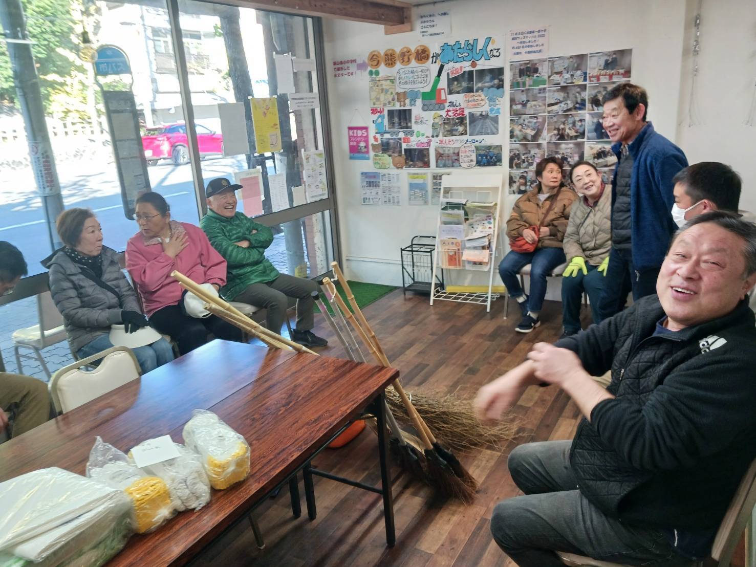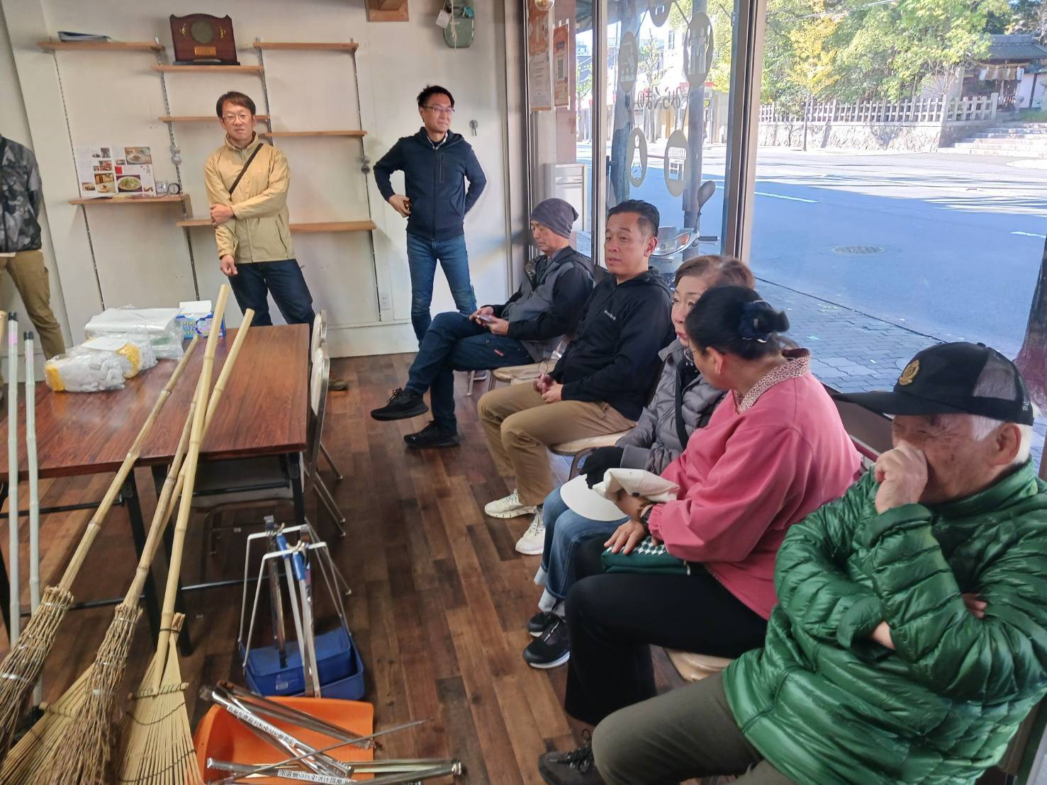 令和7年11月16日に今熊野商店街において一斉清掃が開催され、集合場所である「今熊野商店街振興組合コミュニティホール みらくまの」で今熊野橋架替工事ポスター等を展示し、参加者へ工事進捗についてPRしました。