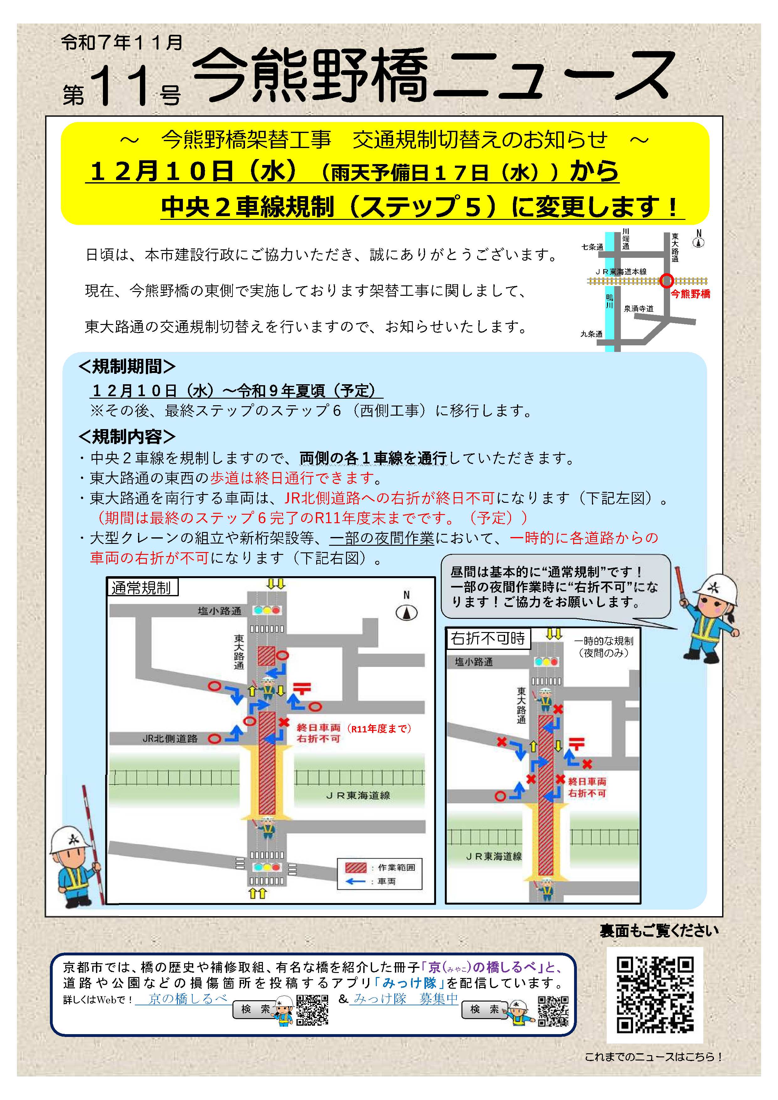 今熊野橋の架替工事では令和7年12月10日に車線切替えを行います!