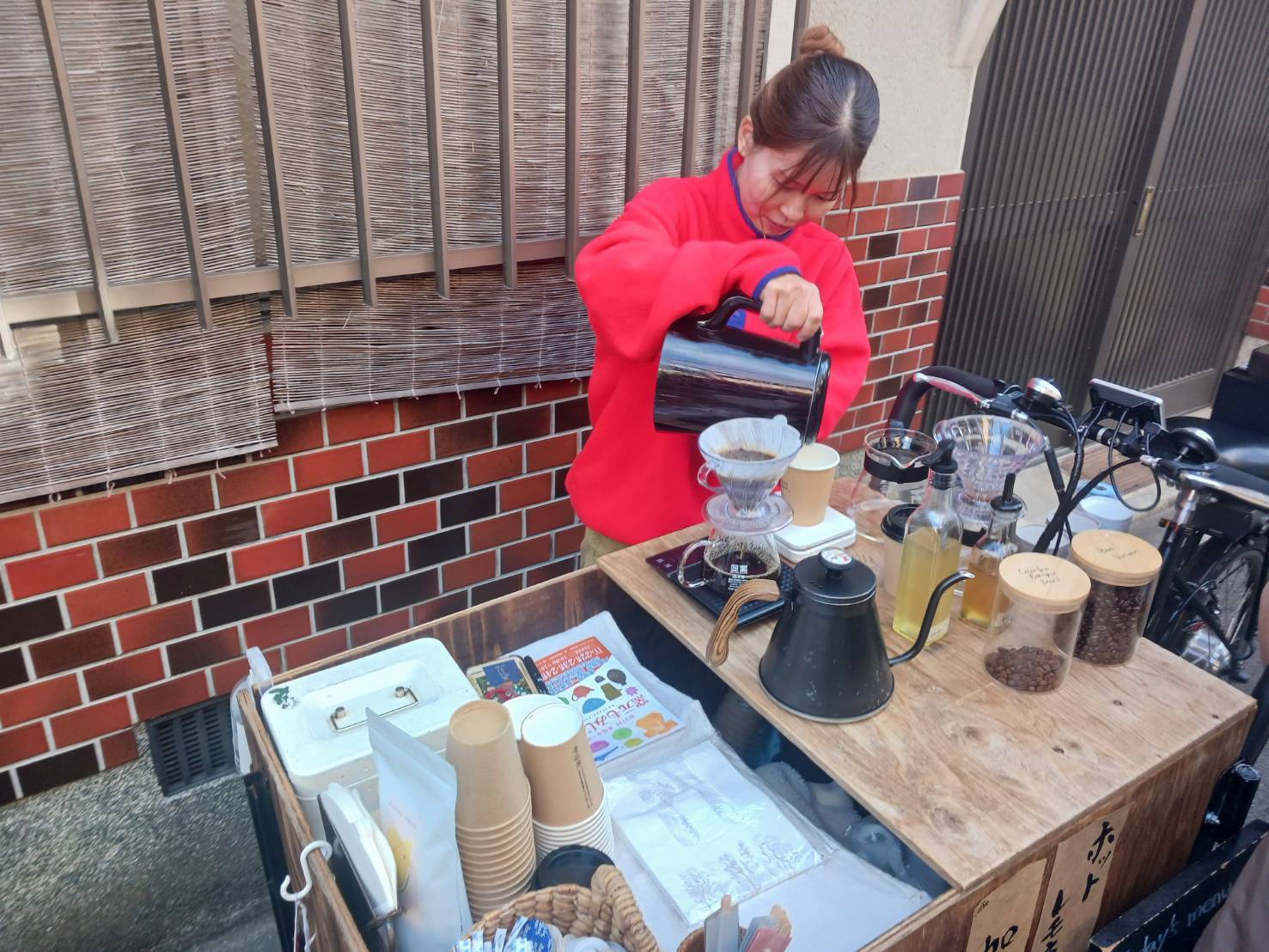 「青窯会会館」では日常から工芸の地での陶芸体験や陶器の展示販売をされていますが、今回は「京焼・清水焼」×「グルメ」×「紅葉シーズン」×「ボランティア(大谷中学・高等学校やコミュニティ・バンク京信)」×「今熊野橋工事PR」のコンテンツの組合せで多くの来場者たちとの楽しい交流がなされました。