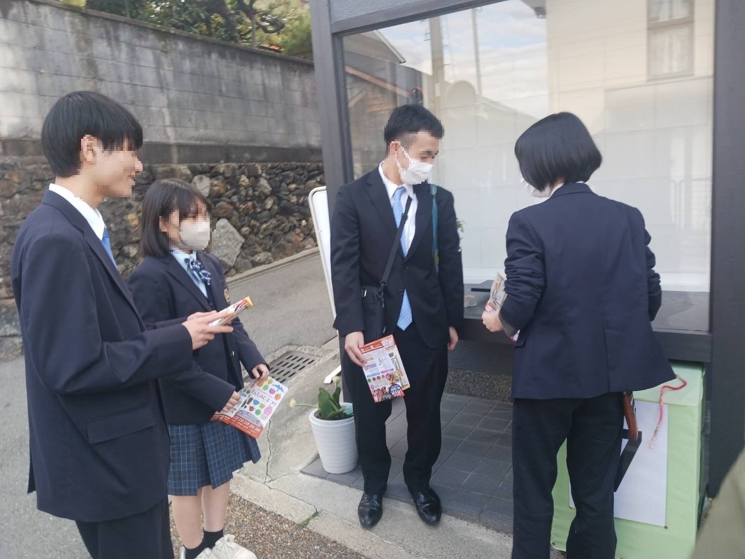 窯元紹介チラシの配布(大谷中学・高等学校ハレジャ部)