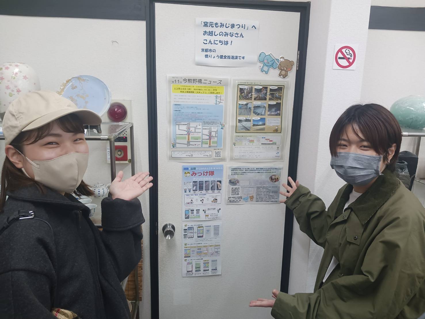 また、地域活性化の一環として、「コミュニティ・バンク京信」がボランティア活動を行っている「大谷中学・高等学校ハレジャ部」と連携して、会場案内等を手伝うことで、幅広い来客層と交流がなされました。京都市も「今熊野橋架替工事」に関して青窯会会館で「今熊野橋ニュース」等の展示や配架をすることで来場者へ広くPRしました。
