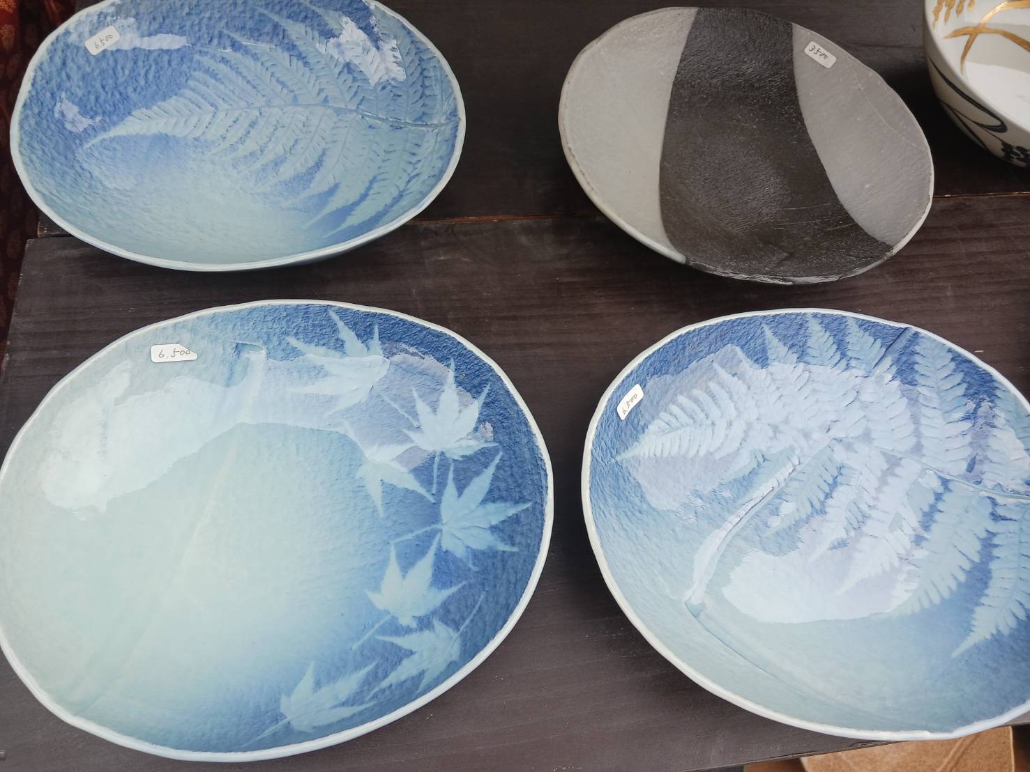 本物の紅葉やシダなどの植物を使って陶器に模様をつけている作品です!
