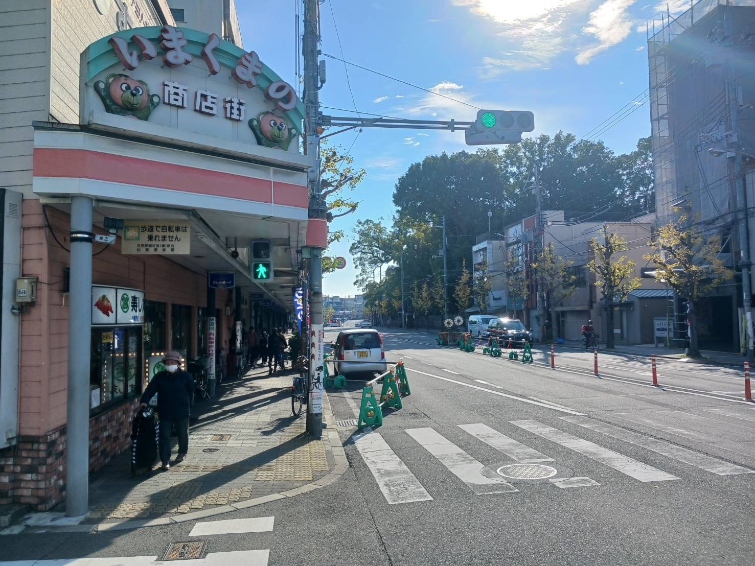 本町通(九条通北側) 北行きの車両通行止めの様子