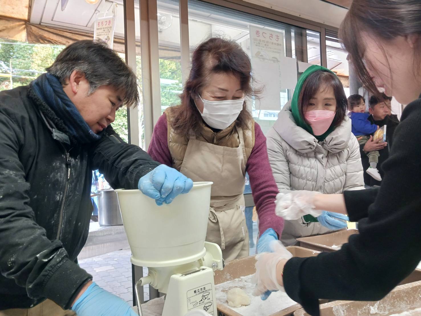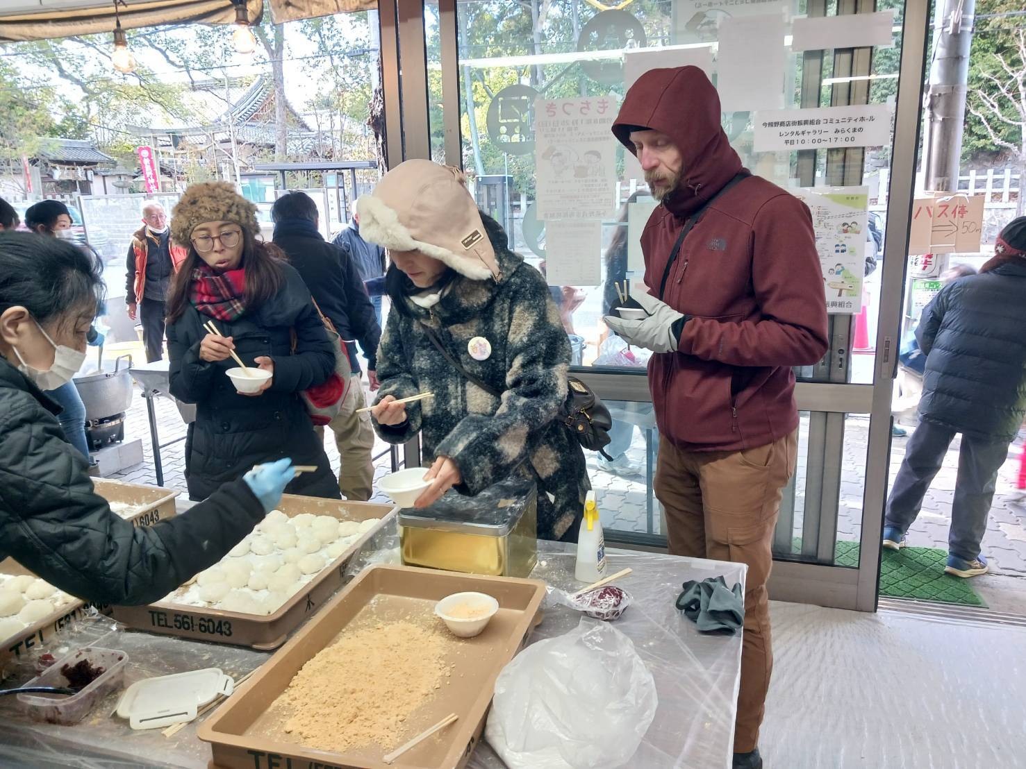 観光客も来てくれて、もちつきの見学やmochi(もち)を食べてもらいました!
